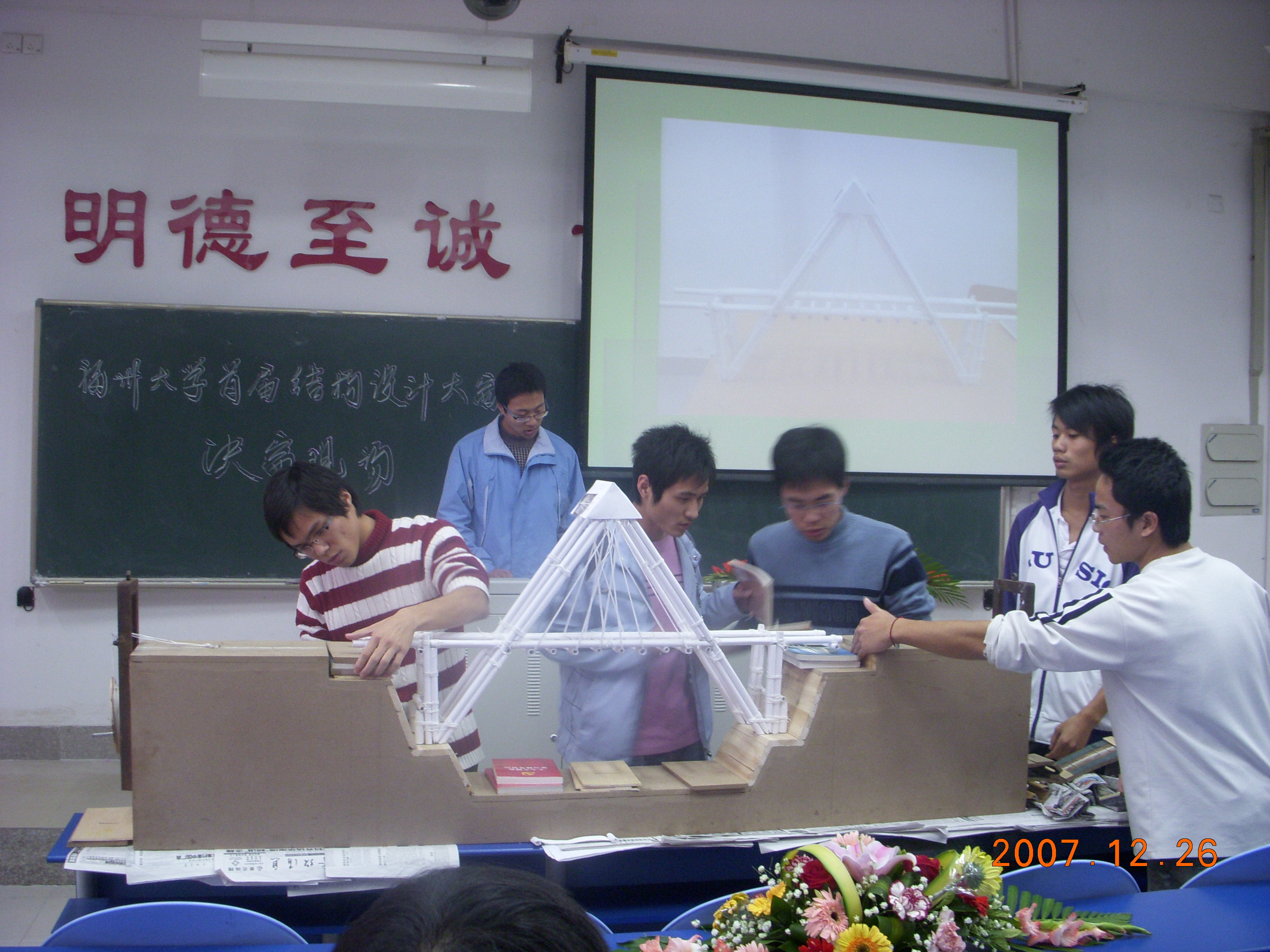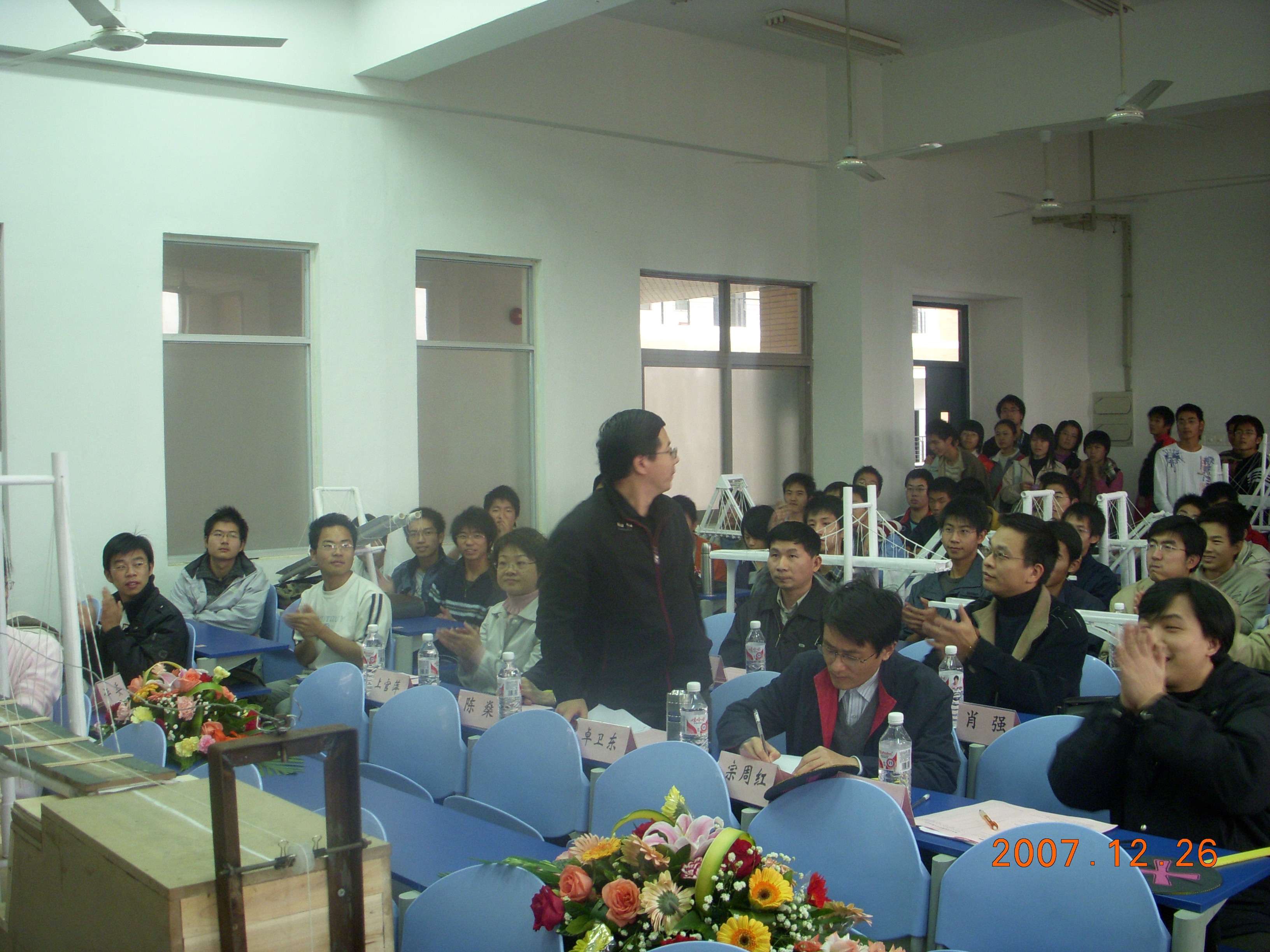 2007年12月26日下午2点,绅士漫画 首届结构设计大赛决赛在东2---303隆重召开。本次决赛邀请了绅士漫画 副院长卓卫东教授、陈燊教授、宗周红教授、上官萍副教授、吴庆雄副研究员等多位专家担任评委。院党委副书记刘朝晖老师、院团委书记肖强老师及院团委副书记兼07级辅导员柯江锋老师、06级辅导员赵国宇老师等学院领导和老师参看了本次比赛。
