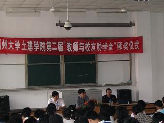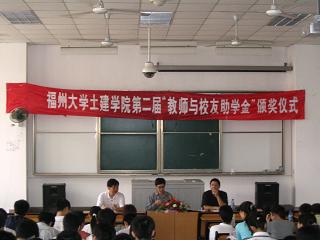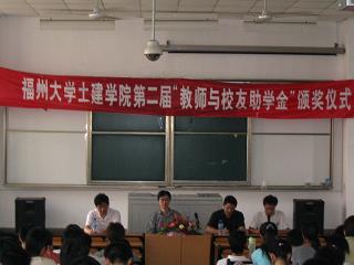 土建学院第二届“教师与校友助学金”颁发仪式在新校区隆重举行 土建学院第二届“教师与校友助学金”颁发仪式6月10日上午在新校区隆重举行,出席大会的有建筑学院聂德贤书记、绅士漫画 陈宝春院长、绅士漫画 林新辉副书记及土建学院各年级指导员老师和获奖同学。 土建学院教师与校友助学金,自2005年5月院“党政工”向全院教师及校友发布募集 “教师与校友助学金”倡议书至今,土建学院的教师和校友的“爱心捐助”已达43880.00元。2005年10月 20日下午在新校区举行了第一届“教师与校友助学金”颁发仪式,共有27人获此奖励。 本次共有30名同学获此奖励。04级给排水陈红超同学代表获奖学生发表了获奖感言。最后陈宝春院长给在座同学作了精彩感人讲话。
