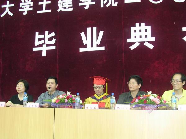 陈宝春院长代表学院在毕业典礼上致辞,向土建学院2005届全体毕业生表示热烈的祝贺,并对辛勤耕耘、无私奉献,为同学们的成长倾注了大量心血的广大老师表示深深的敬意! 同时对即将走出校门迈上新的工作岗位的毕业生们提出了殷切的希望:希望同学们树立远大理想,适应社会,勇敢面对各种挑战;望同学们加强学习,爱岗敬业,努力在平凡的岗位上建功立业;希望同学们保持与母校的联系,继续关心和支持母校的建设和发展。陈院长寄语毕业生们在新的工作岗位上锐意进取,开拓创新,为实现自己的理想和抱负,为祖国的繁荣富强,为中华民族的伟大复兴,做出无愧于时代和人民的贡献!