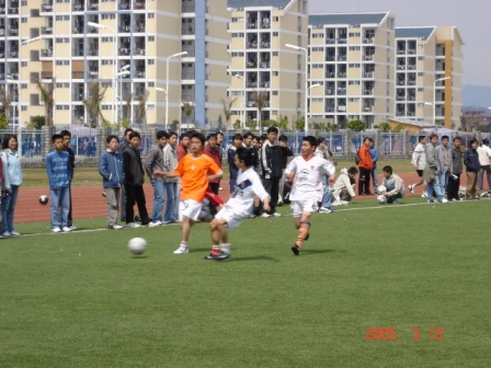 土建学院新老校区足球连谊赛今天上午十点三十分隆重拉开战幕,经过上下半场九十分钟激战,03,04级组成的新区足球队以4:2的比分战胜了前来应战的以01,02,及研究生组成的老区足球队。 上半场刚开始,老区足球队在新区足球队未来得及站稳脚跟,就连下两城,给了对手一个下马威,此后,双方对抗才算刚刚开始,激烈场面不断,火药味十足,在这场势均力敌的比赛中,运气倒向了老区一边,但凭借着顽强的毅力,精妙的脚法,完美的技术,新区足球队没有让来为他们加油助威的球迷们失望,最终将比分反超。 然而,在这里,比分不再是人们最关心的问题,切磋球艺,提高水平,这里仿佛是足球迷的盛会,欢乐的海洋,这里的激情,欢乐,沮丧和灵动都属于热爱足球的人们。 足球中充满了未知与美丽,充满了激情和梦想,充满了汗水和泪水。正是因为它拥有了我们的希望,我们不知不觉,把足球变成了一种生活。