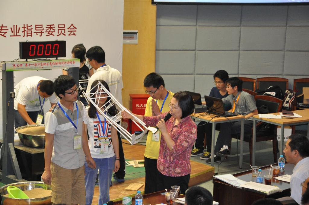 选手在的祁皑教授以及陈力波老师的带领指导下,充分利用专业知识和实践经验,巧妙设计、认真制作、反复测试,最终完成模型制作,并以创新的结构设计、精良的制作技艺和良好的展示效果在 “结构体系”、“重量”、“现场拼装速度”、“加载试验中的表现”四项指标的综合评比中获得大赛评委的一致好评,最终取得佳绩。