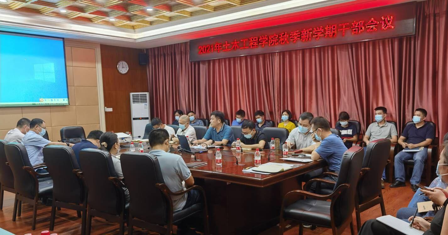 在土南楼六楼会议室召开2021年秋季新学期干部会议。会议由院党委书记黄培明主持。学院党政领导、党委委员、工会主席,系、所、中心主任,科级干部,教工支部书记参加会议。