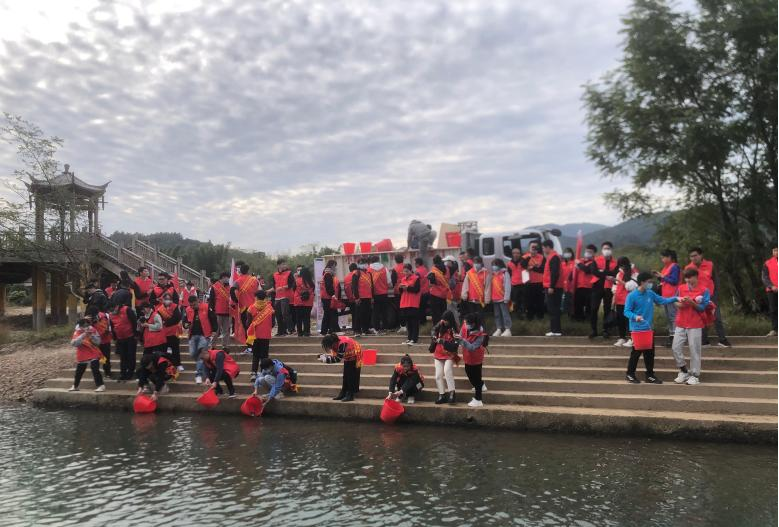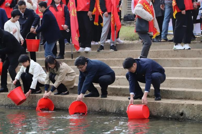 随后,出席活动的领导嘉宾实地开展霍童溪溪池村河段巡河工作并参与增殖放流活动,志愿者们科学放生了由北京市企业家环保基金会科学放生专项基金爱心支持的10万尾鳙鱼苗和土鲮鱼苗,福小禹也积极了参与放生活动。
