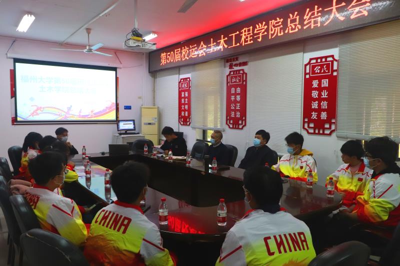 南楼会议室举行第50届校运会总结大会。学院党委书记黄培明、党委副书记余飞、分管学生体育工作的教师徐剑、院学生会体育部部长、体训部部长以及运动员代表出席了本次大会。