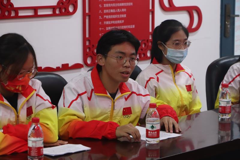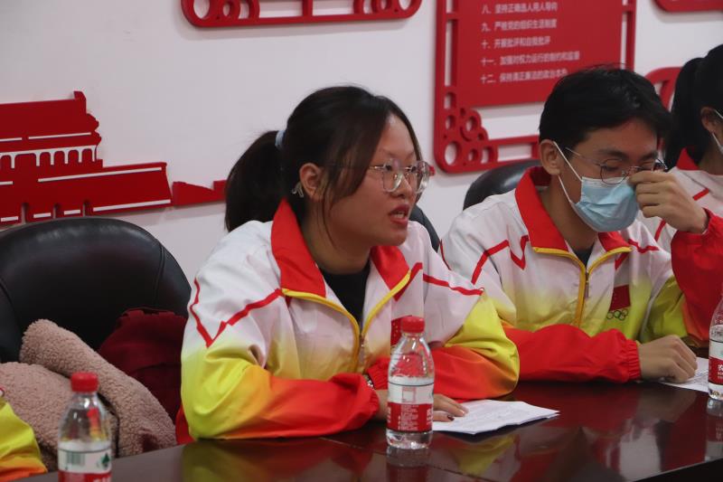 随后,运动员代表,2021级土木工程专业的黄啟超同学与2020级水利水电工程专业的潘雨璐同学分别代表运动员进行了发言。他们先是总结了在此次运动会上取得的成绩,讲述在训练期间以及运动会赛场上遇到的困难并如何自我调整,最终取得良好成绩的。黄啟超与潘雨璐都表示:虽然训练与比赛是很劳累,但能在赛场上奋勇拼搏,为集体争得荣誉还是很有收获、很有成就感的。