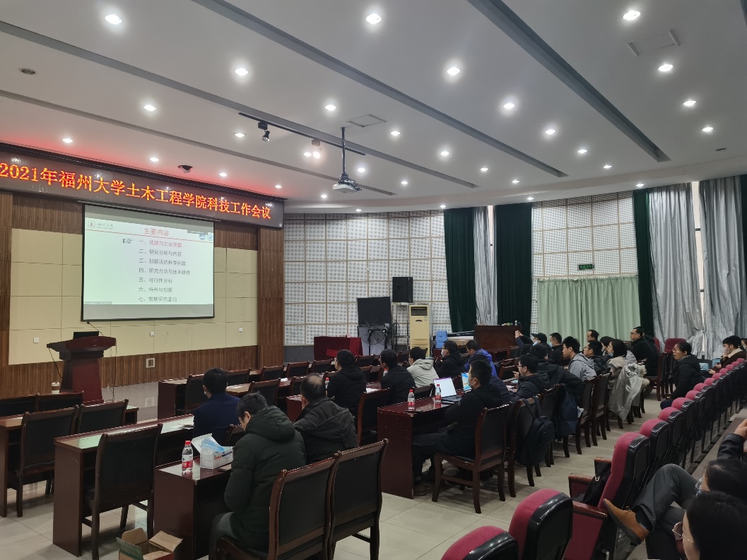 2021年度科技工作会议在学院多功能厅举行,张挺副院长主持本次工作会议。