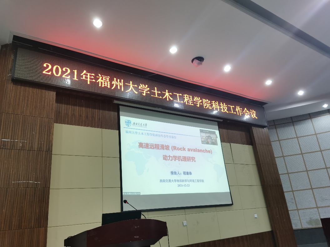 接着,由程谦恭教授首先介绍了滑坡的相关研究内容,重点介绍了高速远程滑坡动力学的内容、研究方法、研究进展与研究前景。