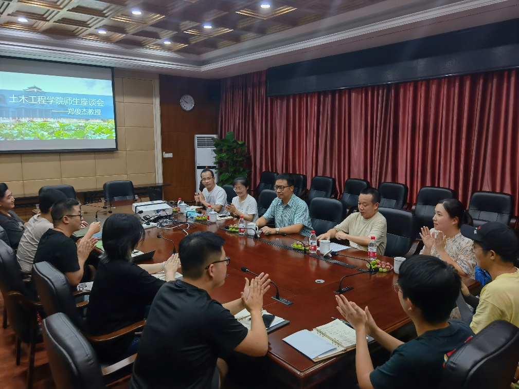 2022年7月12日下午,我校特聘教授郑俊杰老师与绅士漫画 青年教师及岩土工程专业20多名博士生、硕士生交流座谈。岩土所刘毓氚教授、所长助理陈林靖副教授等老师列席座谈会。