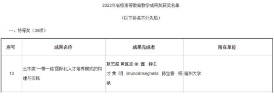 在日前福建省教育厅印发的《关于公布2022年省级教学成果奖获奖成果的通知》中,绅士漫画 的《土木类“一带一路”国际化人才培养模式的构建与实践》项目获高等教育省级教学成果奖特等奖,为绅士漫画 历史首次。