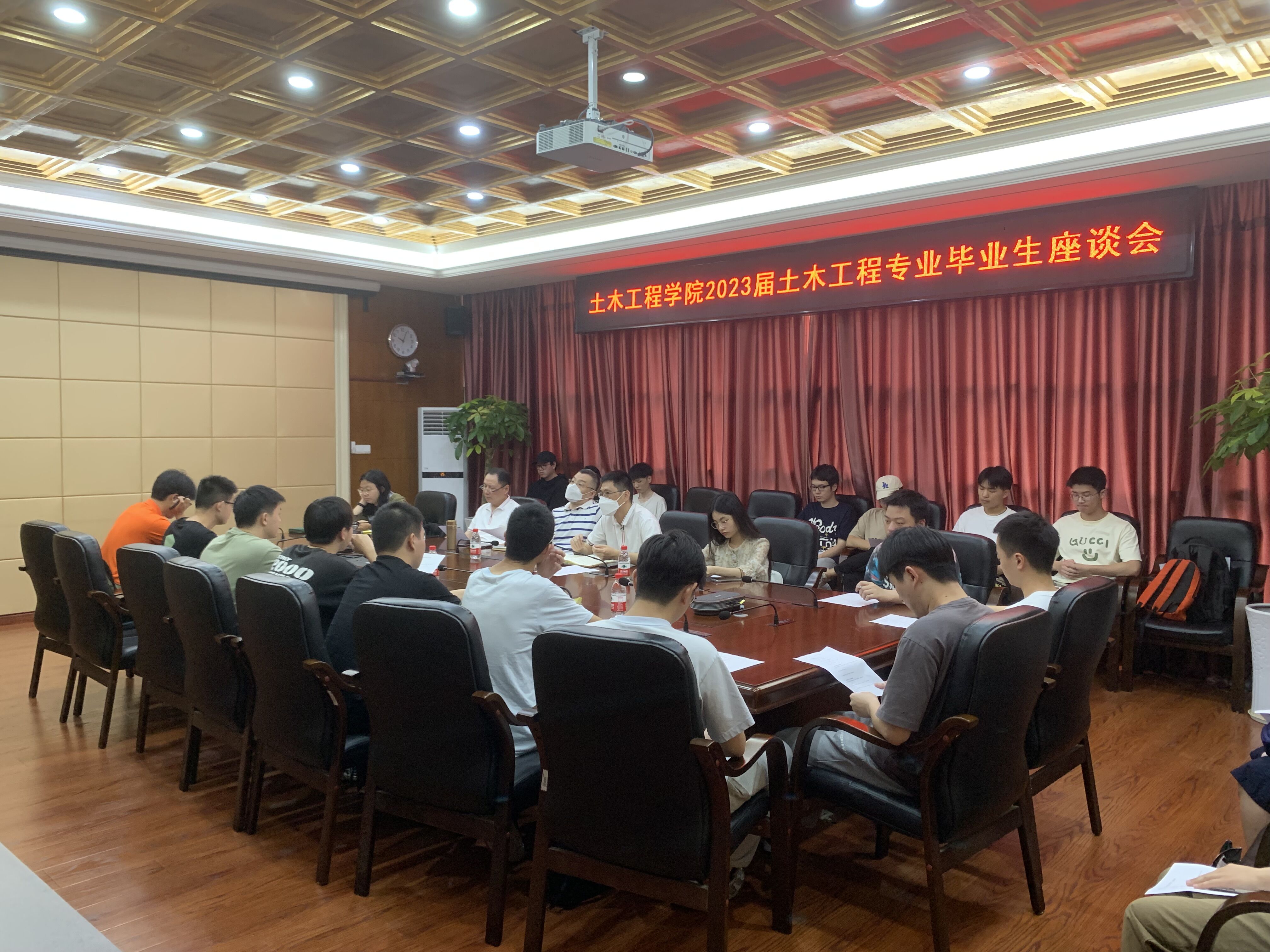 在学院六楼会议室召开2023届土木工程专业本科毕业生座谈会。学院党委副书记郑寿、分管教学院长助理黄冀卓、土木工程专业三个方向系主任、教师代表、毕业班辅导员以及土木工程专业二十余名学生代表参加座谈,会议由院长助理黄冀卓主持。