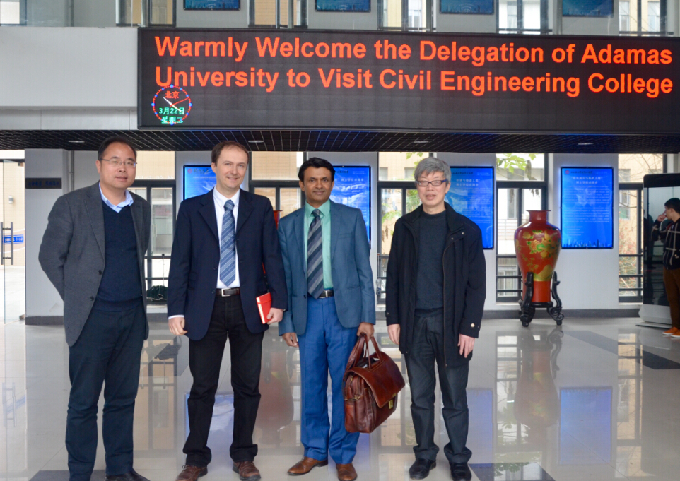 布鲁诺院长、胡昌斌副院长、陈宝春教授,以及印度Adamas大学代表人Parimal Chandra Biswas出席签约仪式。