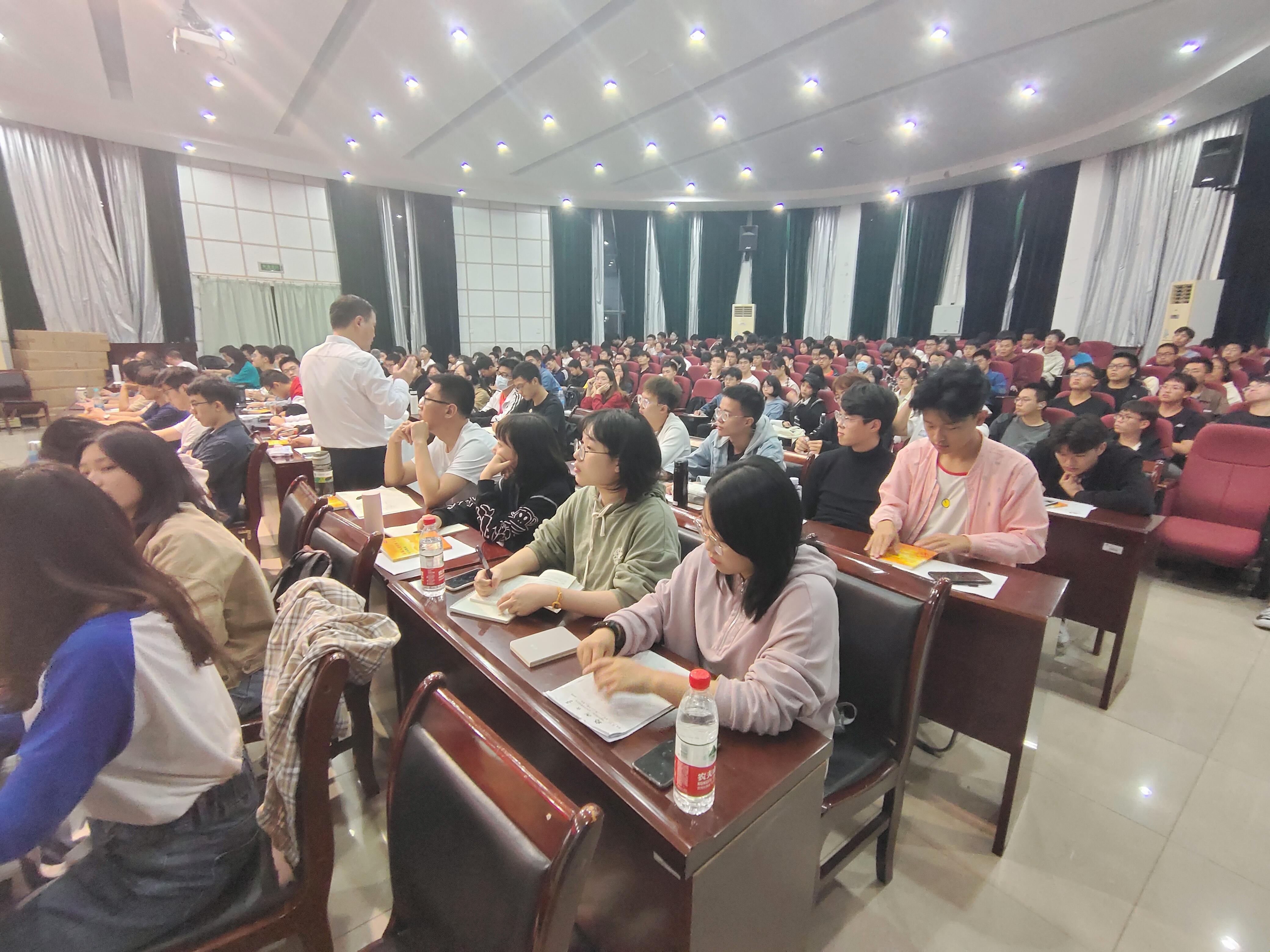 学情,分析自己经过不断地调研,总结出以往的土木学院学生学情——难毕业,高就业,并以此提醒培训班学员们要重视学业,并激励学员们,要不断提升自我,增强自信。