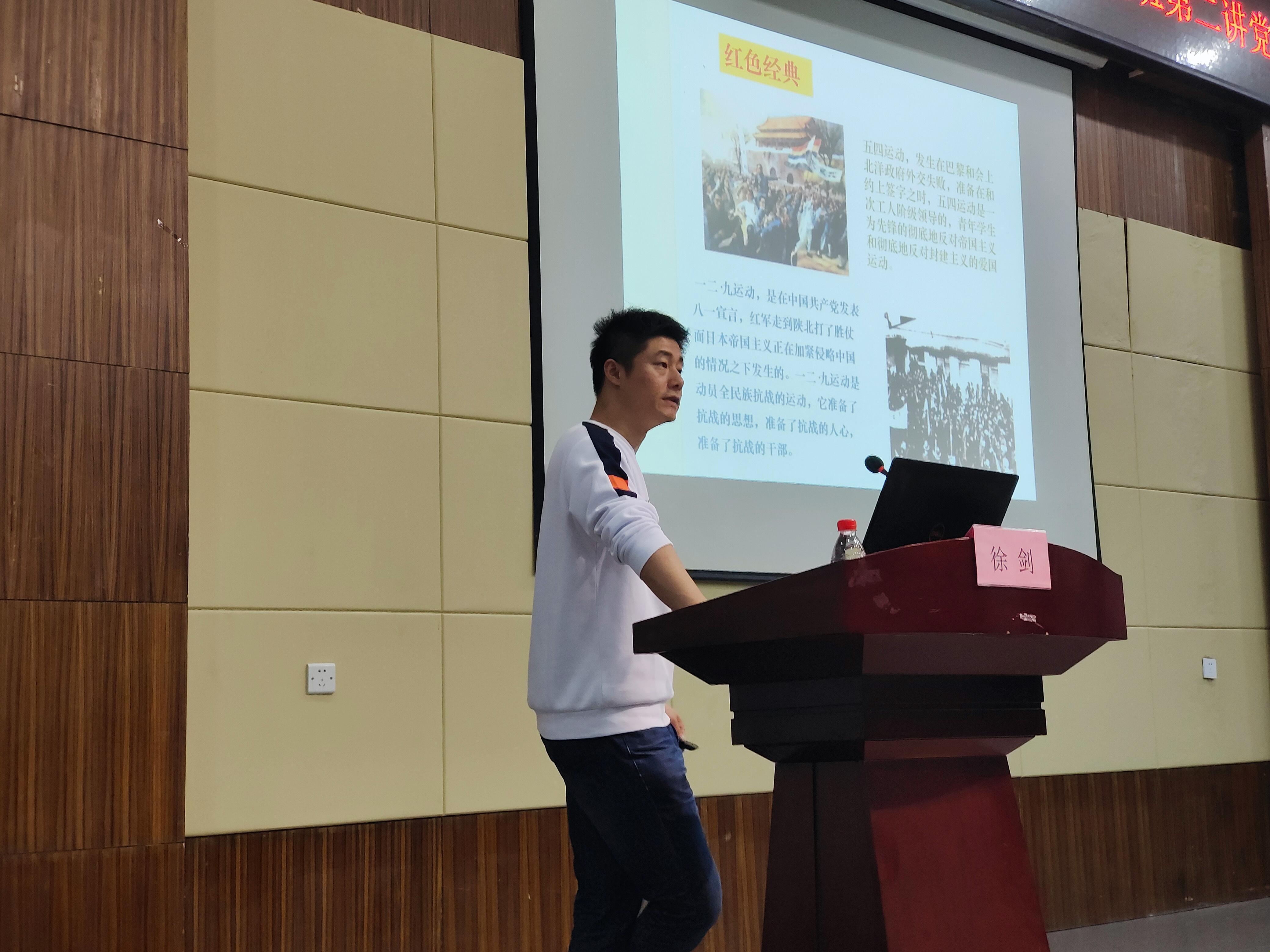 接下来,徐剑老师通过正反两方面的案例,指出了当代大学生正确的人生追求和奋斗目标,并引用十九大报告和习近平在纪念五四运动100周年时的讲话,生动阐述了共产党对大学生的勉励和对青年成长成才的嘱托,让学员们深刻理解了加入共产党是当代青年大学生成长成才的正确选择。