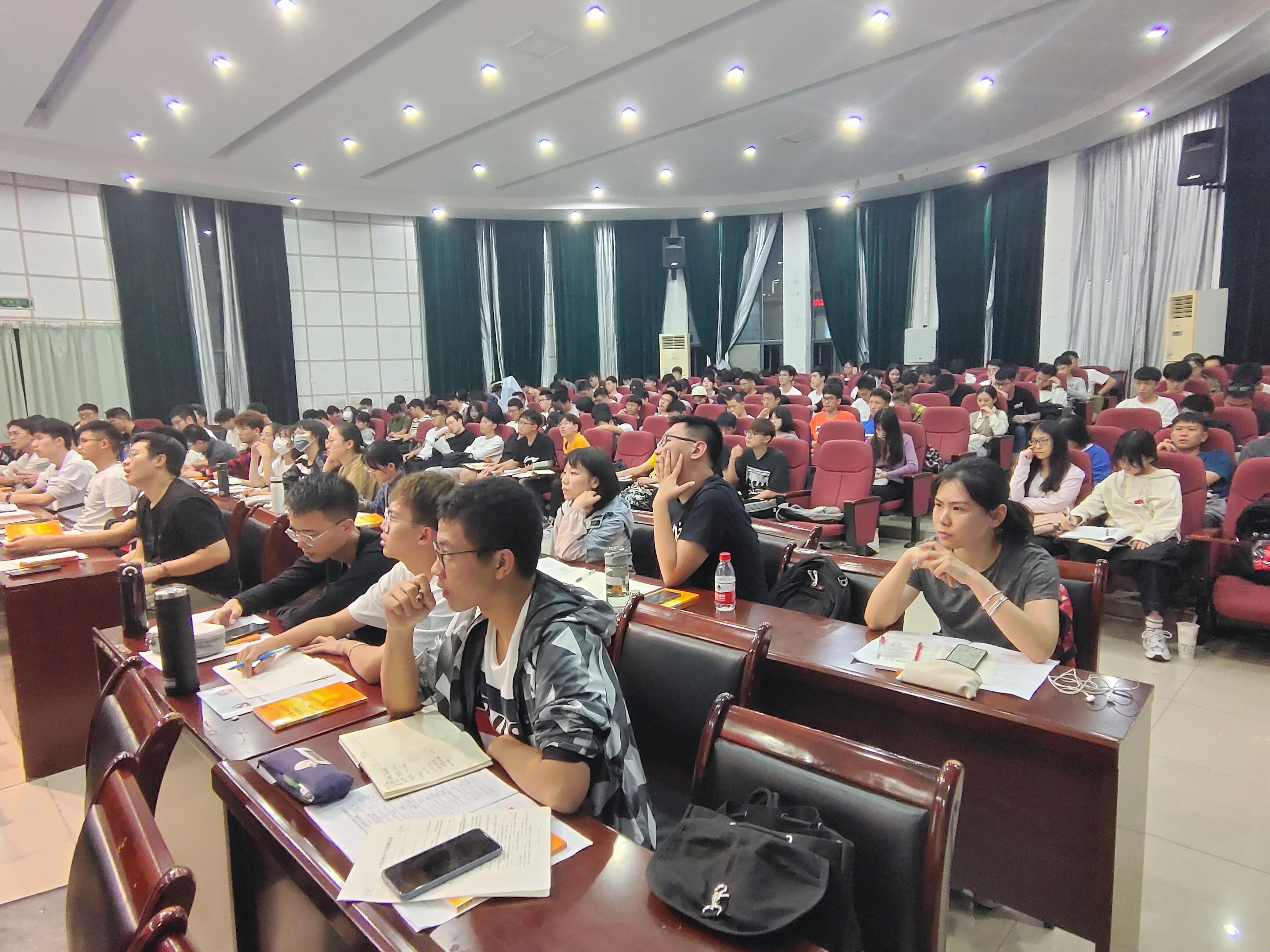 多功能厅进行党课第二讲,由学院2020级辅导员徐剑为培训班全体学员讲授《中国共产党与青年大学生——目标与成长》。