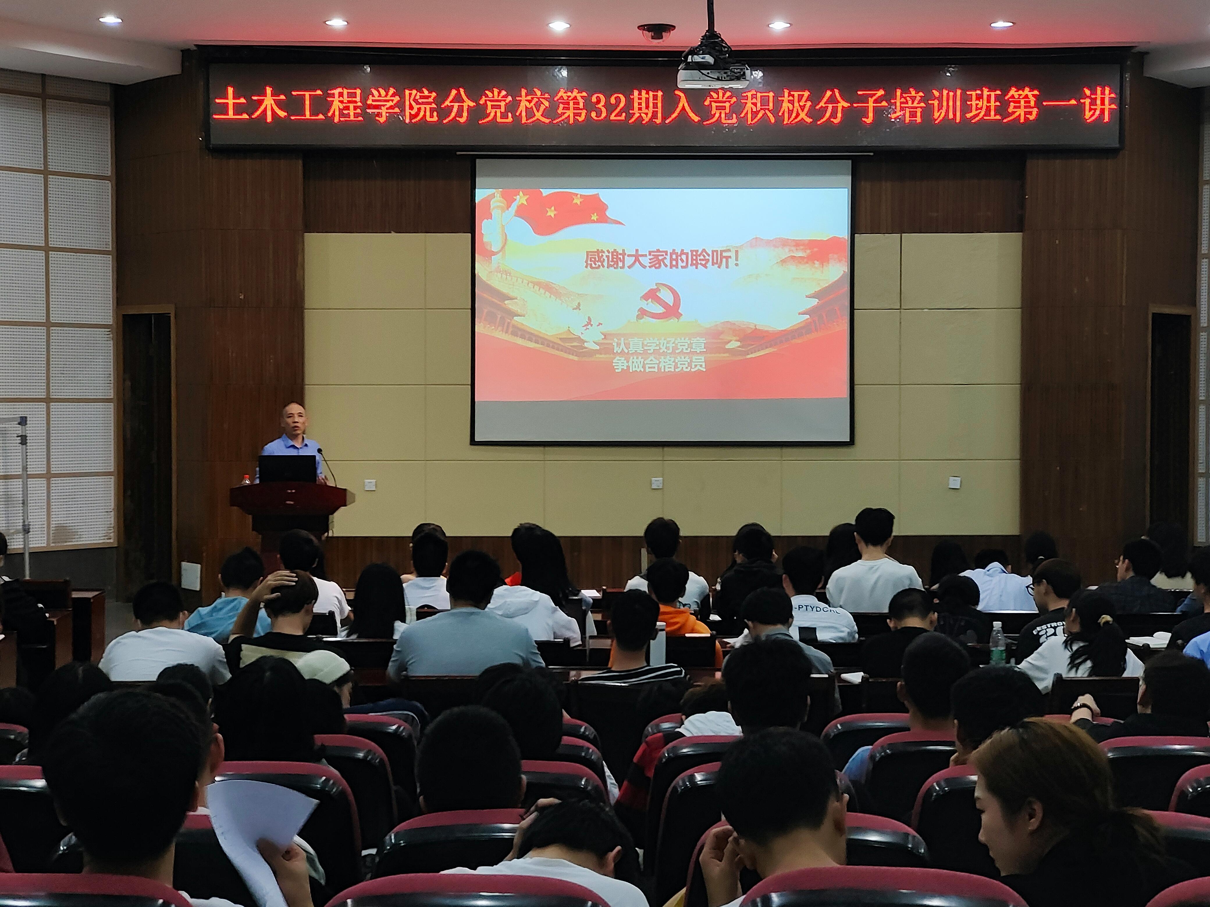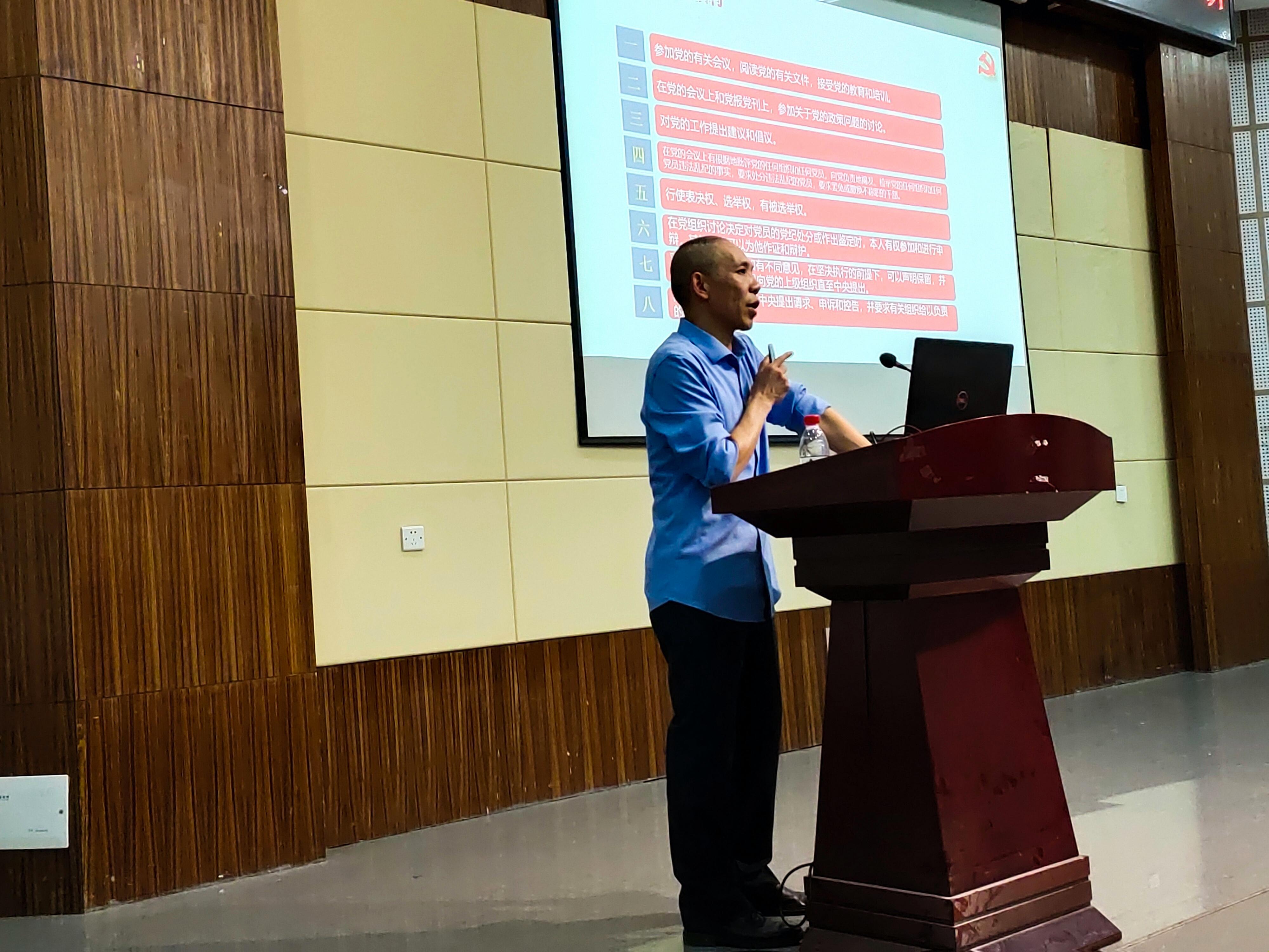 学术报告厅正式开班,在简短的开班仪式后开始培训班党课第一讲,由院党委副书记余飞为培训班全体学员解读《中国共产党章程》。