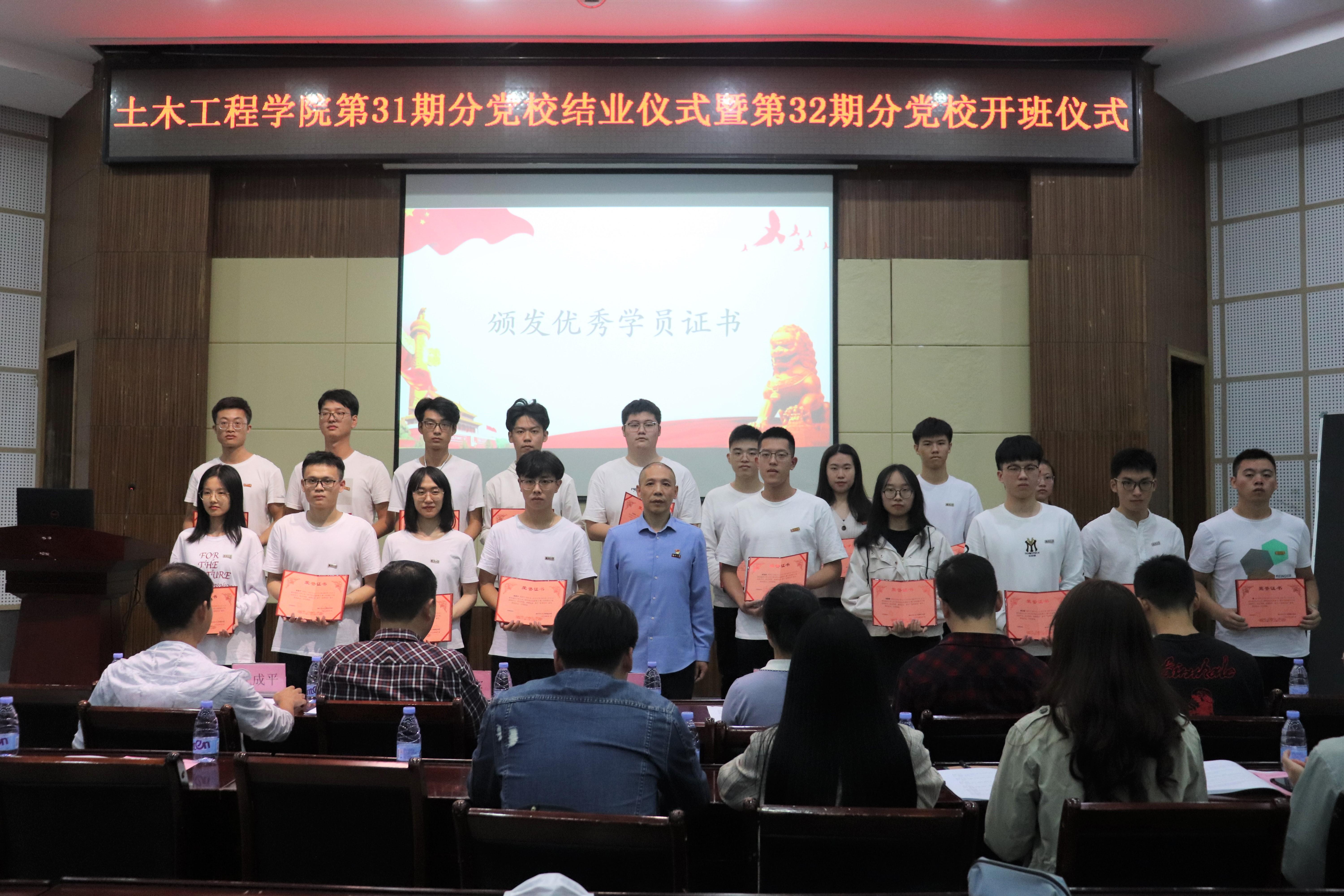 第31期分党校结业仪式暨第32期分党校开班仪式。院党委副书记、分党校副校长余飞, 院党员委员、团委书记许长宾,院党办主任姚学敏,以及各年级专、兼职辅导员出席本次会议。