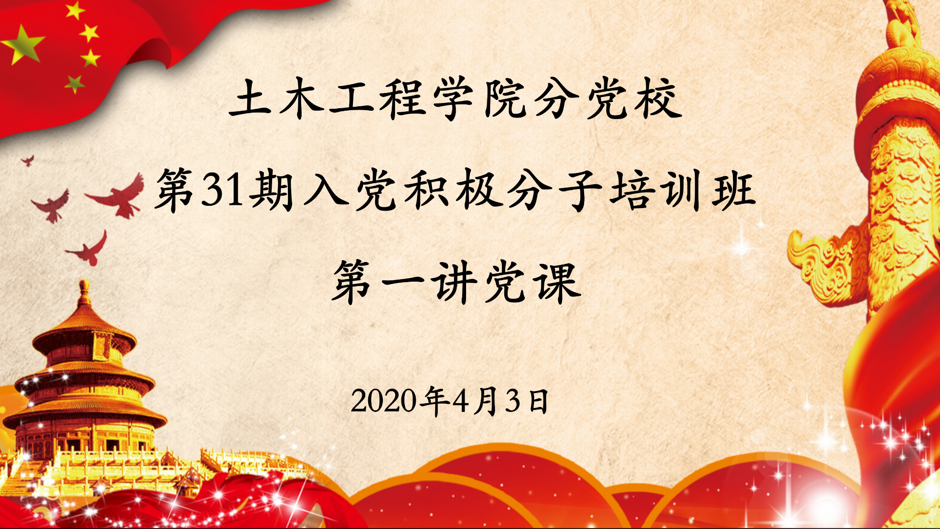 为贯彻落实教育部“停课不停教、停课不停学”的工作要求,进一步做好疫情防控期间学院分党校工作,根据学院党委部署要求,高质高效地开展分党校第31期入党积极分子培训班。