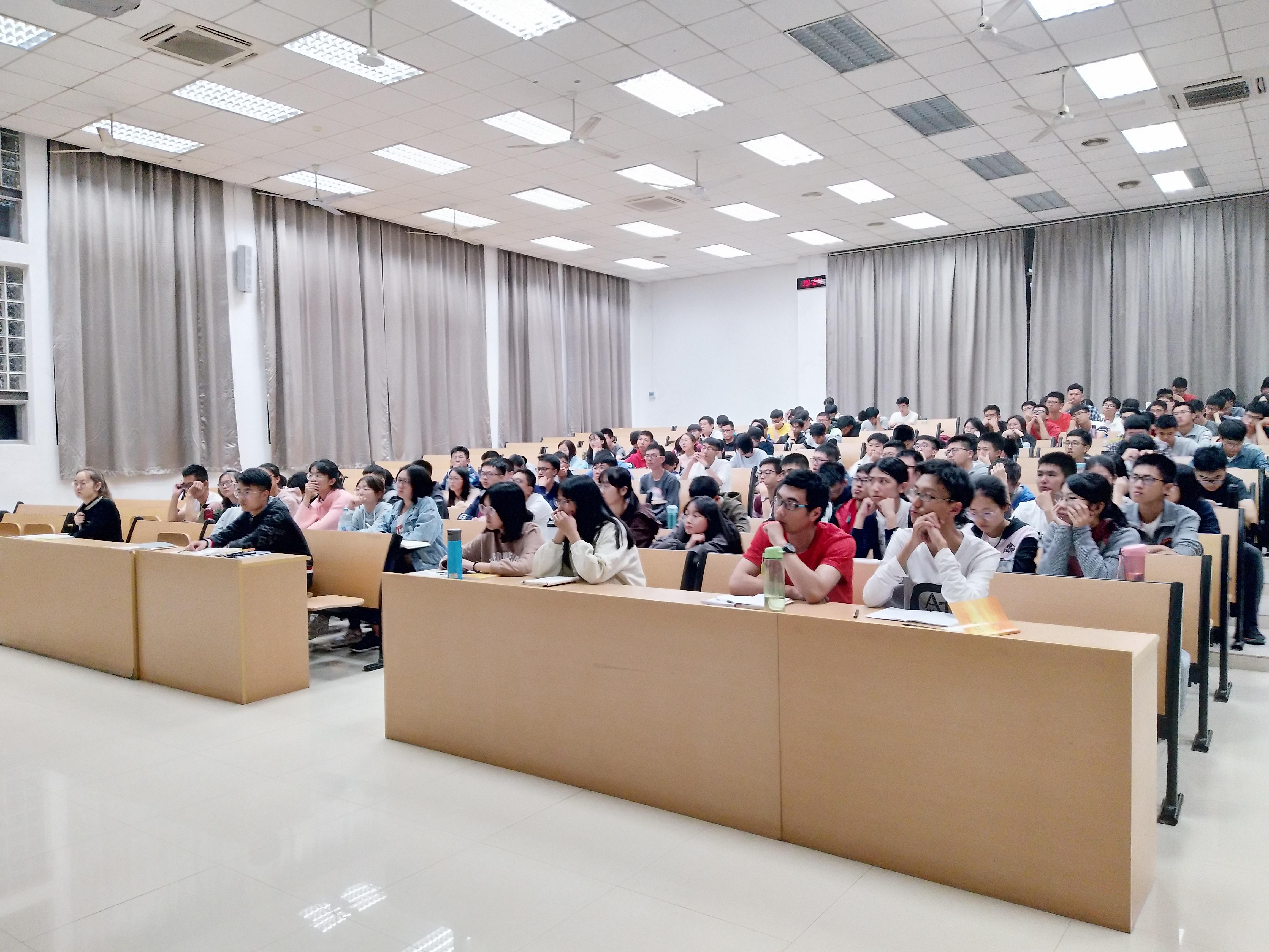 王剑龙老师是材料科学与工程学院党委副书记,硕士毕业于福建师范大学马克思主义学院,长期从事大学生思想政治工作,具有丰富的学生工作经验。在课堂上,王剑龙副书记首先为培训班学员简述了中美贸易战的缘起和发展,分析其爆发的原因,并从中提出要树立正确的历史观、大局观和角色观以把握国际形势。随后,他通过介绍刘强东事件、华为受限、南海挑衅等多项贸易战指出当下贸易战的核心是美国想狙击中国的崛起。
