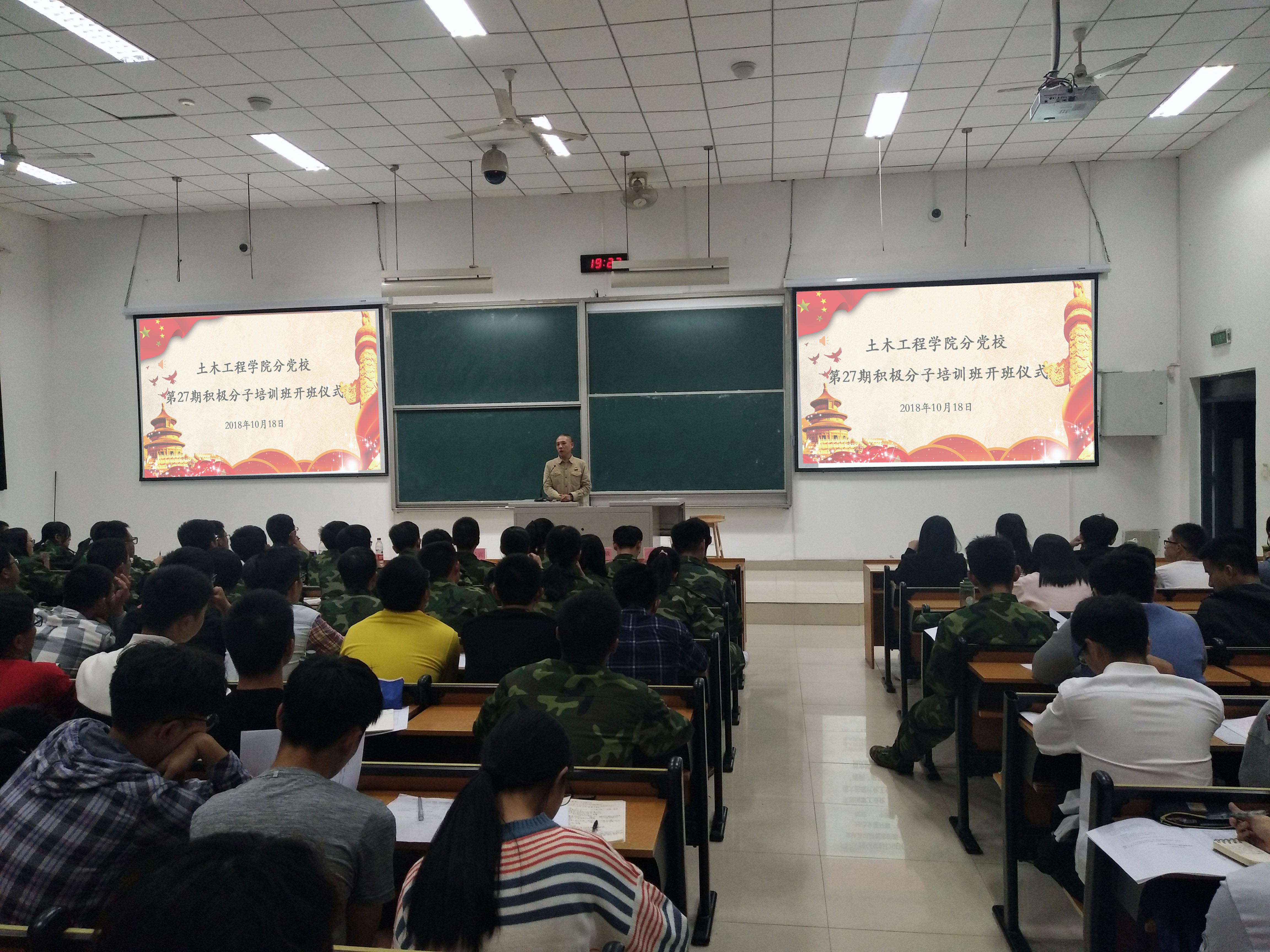 分党校第27期入党积极分子培训班开班仪式在文4-101顺利举行。院党委副书记、分党校副校长余飞、院团委书记许长宾、院党办主任姚学敏、各年级辅导员以及142名入党积极分子参加了此次开班仪式。此次开班仪式由院党委组织员陈秋兰主持。