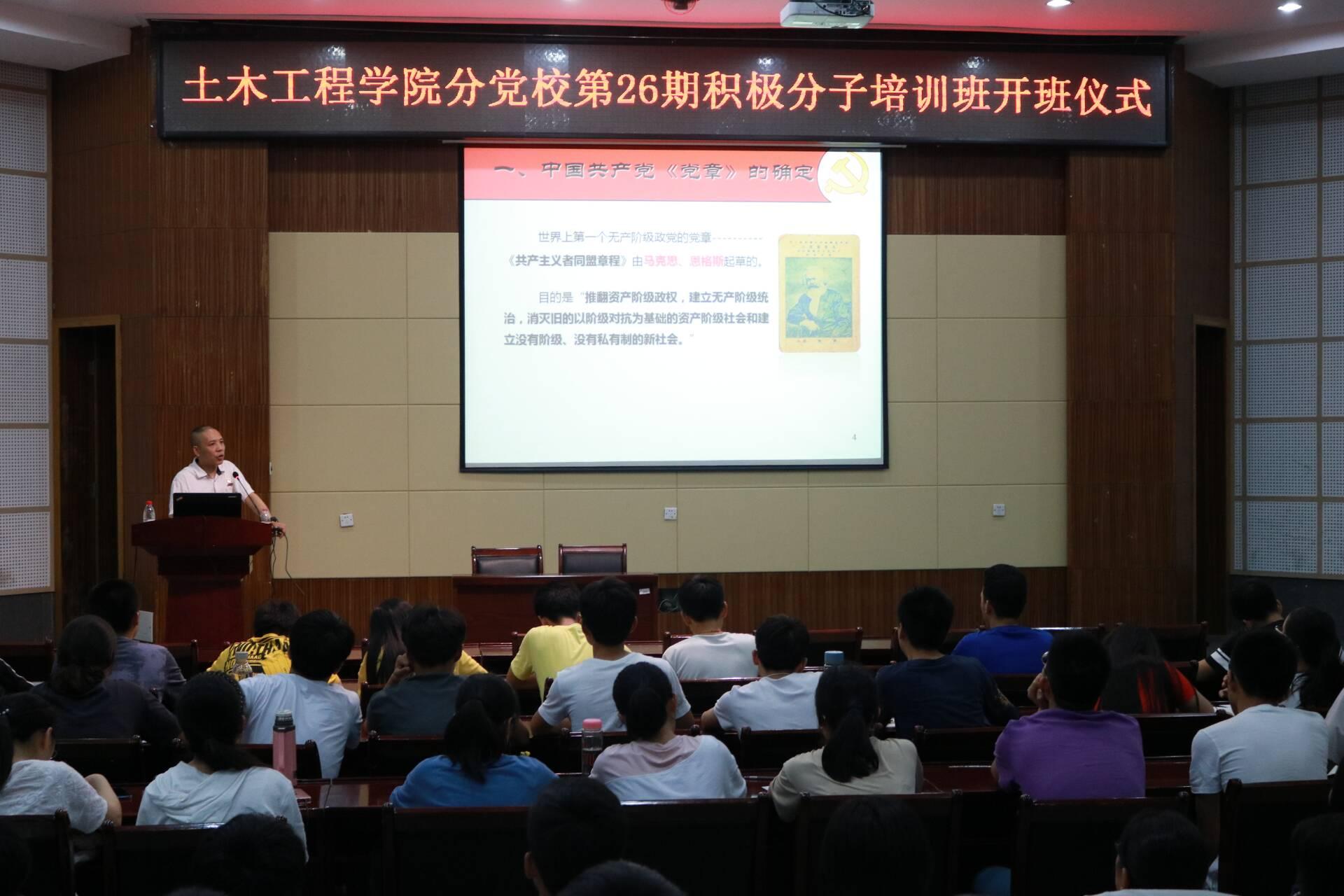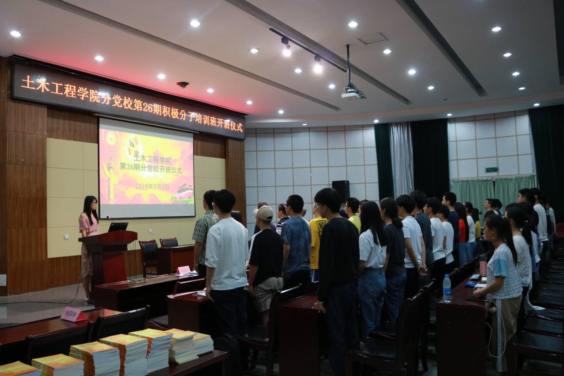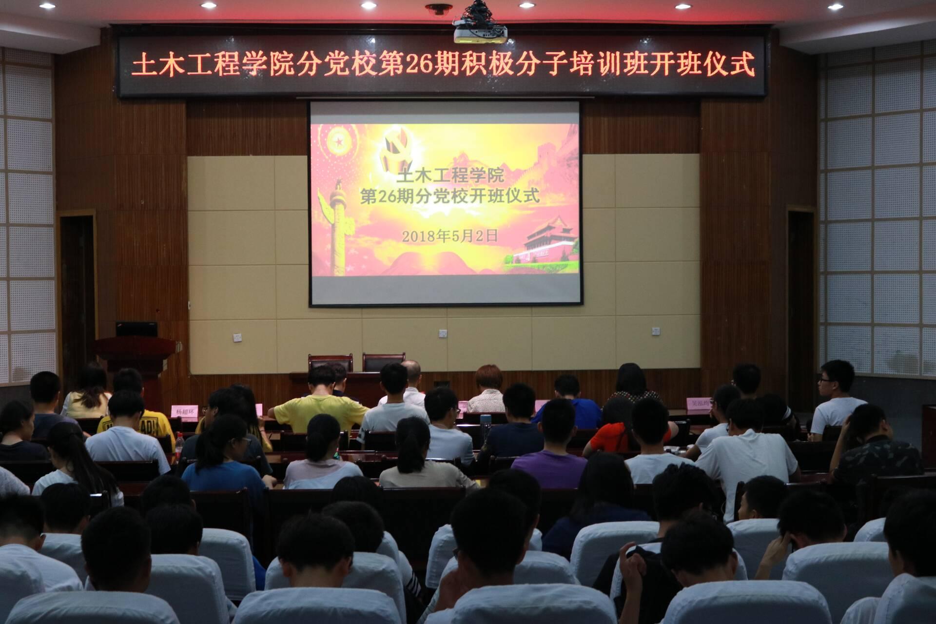 2018年5月2号晚上七点,我院分党校第二十六期积极分子培训班开班仪式在土木多功能厅举行。院党委副书记余飞为该仪式作开班动员讲话并为培训班作了第一讲专题报告,院团委书记许长宾、各级辅导员以及新一批入党积极分子共计120多余人参加了本次开班仪式。