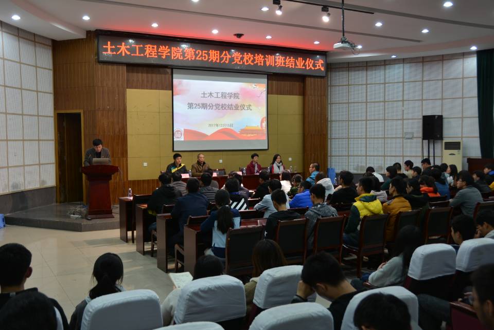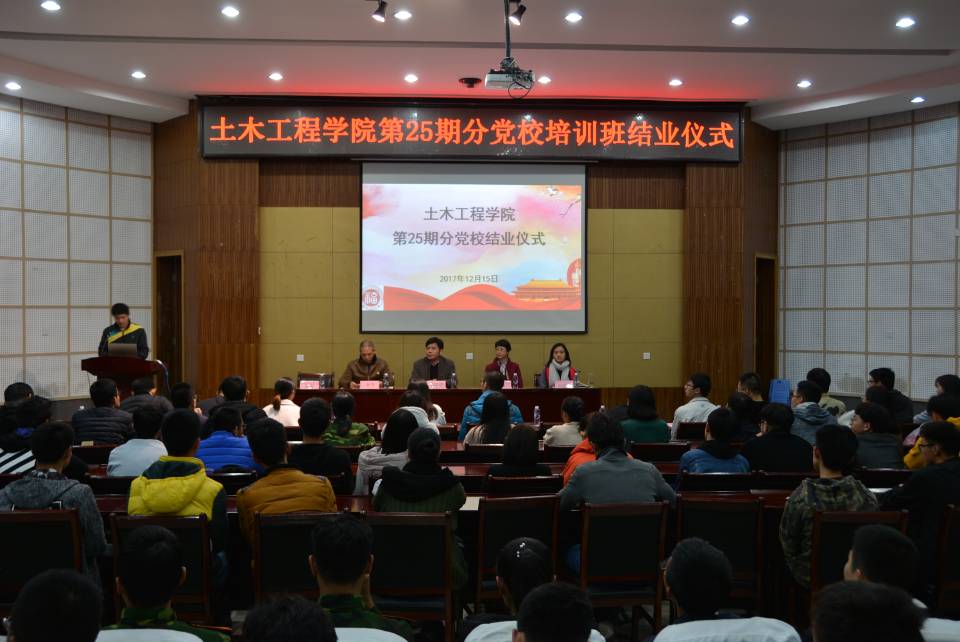 分党校第25期培训班结业仪式在学院学术报告厅隆重召开。参加结业仪式的有学院党委书记、分党校校长黄培明,党委副书记、分党校副校长余飞,党办主任钱升,党建工作负责人徐剑,2017级辅导员刘歆一,各年级的专兼职辅导员以及顺利结业的入党积极分子。