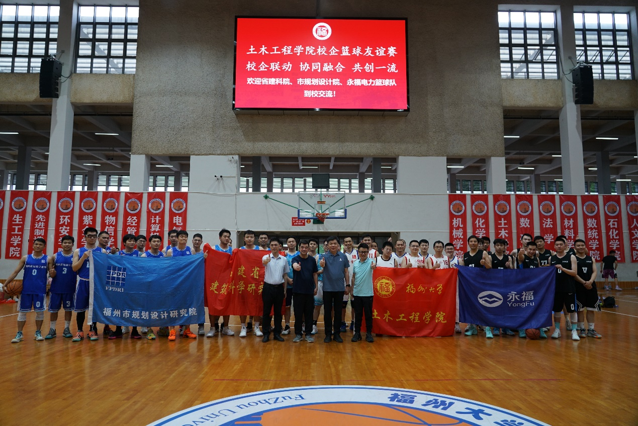 于5月22日下午在旗山校区风雨操场举办了一场主题为“校企联动,协同融合,共创一流”的校企篮球友谊赛,邀请坐落于福州高新区的福建省建筑科学研究院有限责任公司、福州市规划设计研究院集团有限公司、福建省永福电力设计股份有限公司三支企业男子篮球队参赛。省建科院党委书记兼董事长叶健,永福电力副总经理卢庆议和绅士漫画