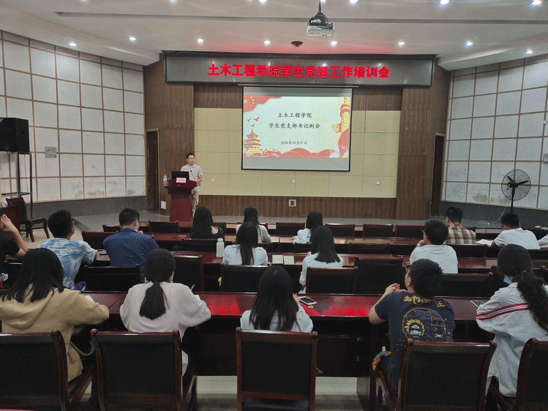 在土木工程学院多功能厅召开学生党支部书记例会暨党建工作培训会,学院党委办主任姚学敏、19级辅导员陶亮莅临会议指导绅士漫画