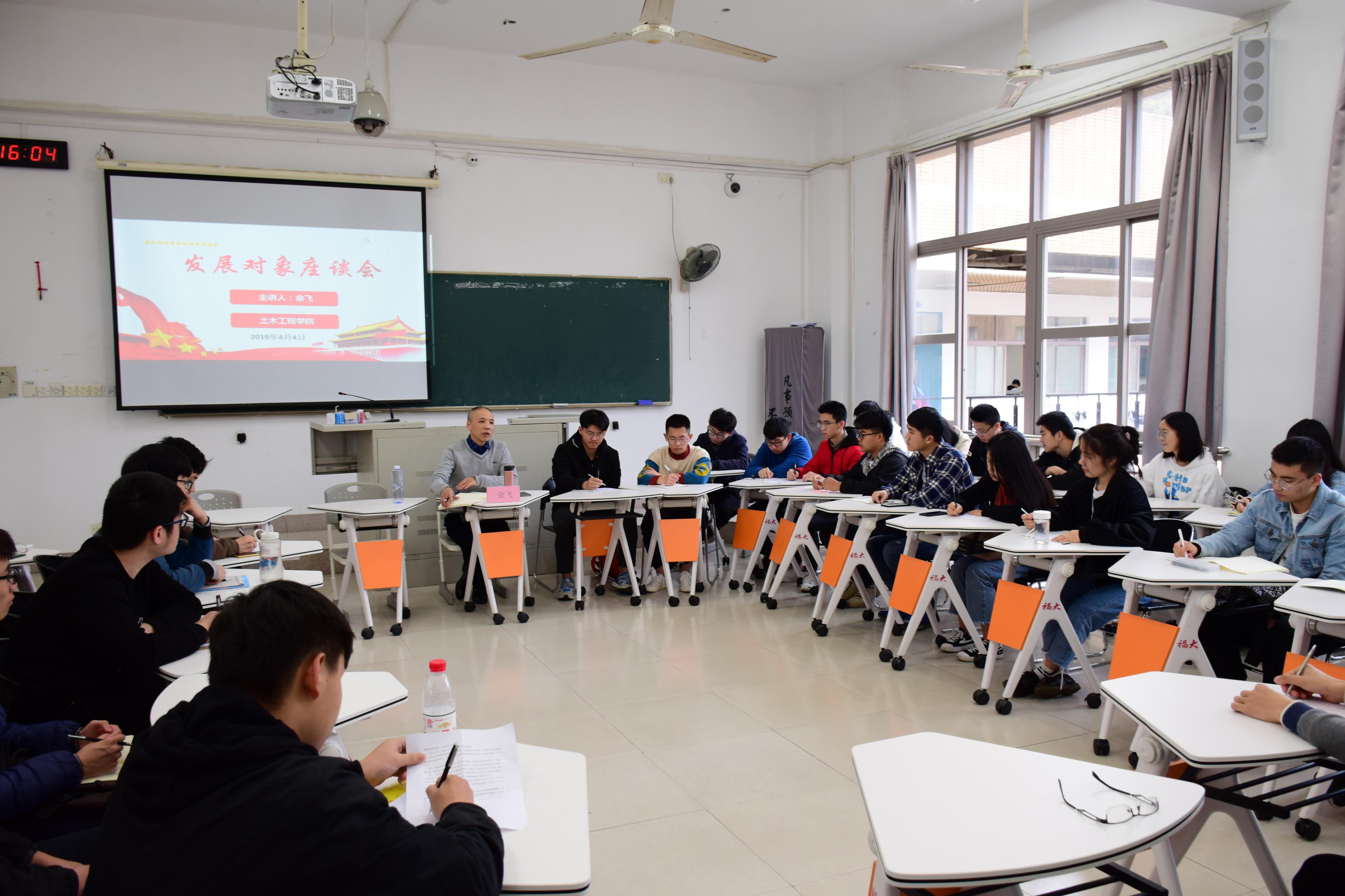 党委副书记余飞同志在教学楼东三504教室与校党委党校第214期发展对象开展座谈交流。