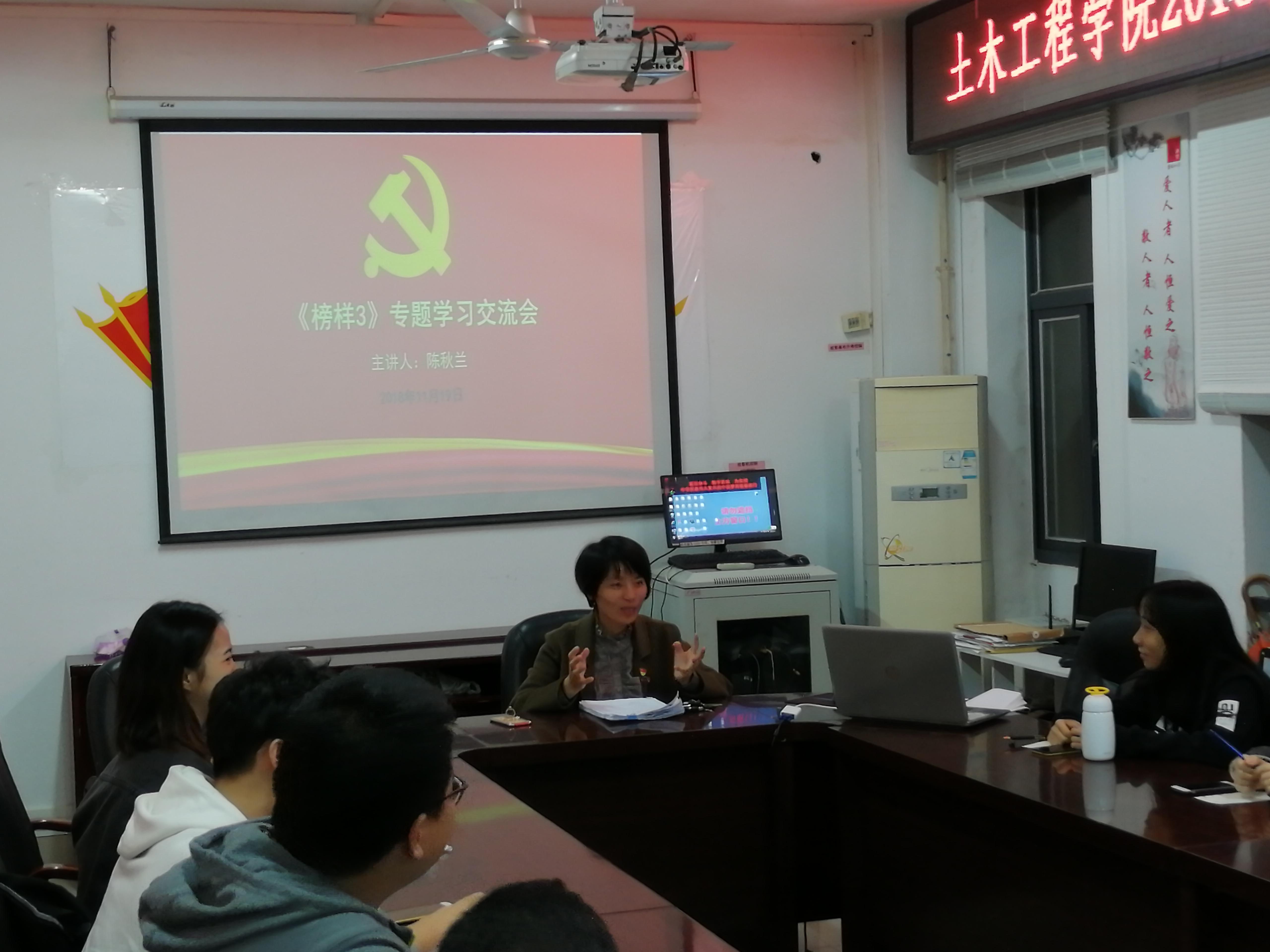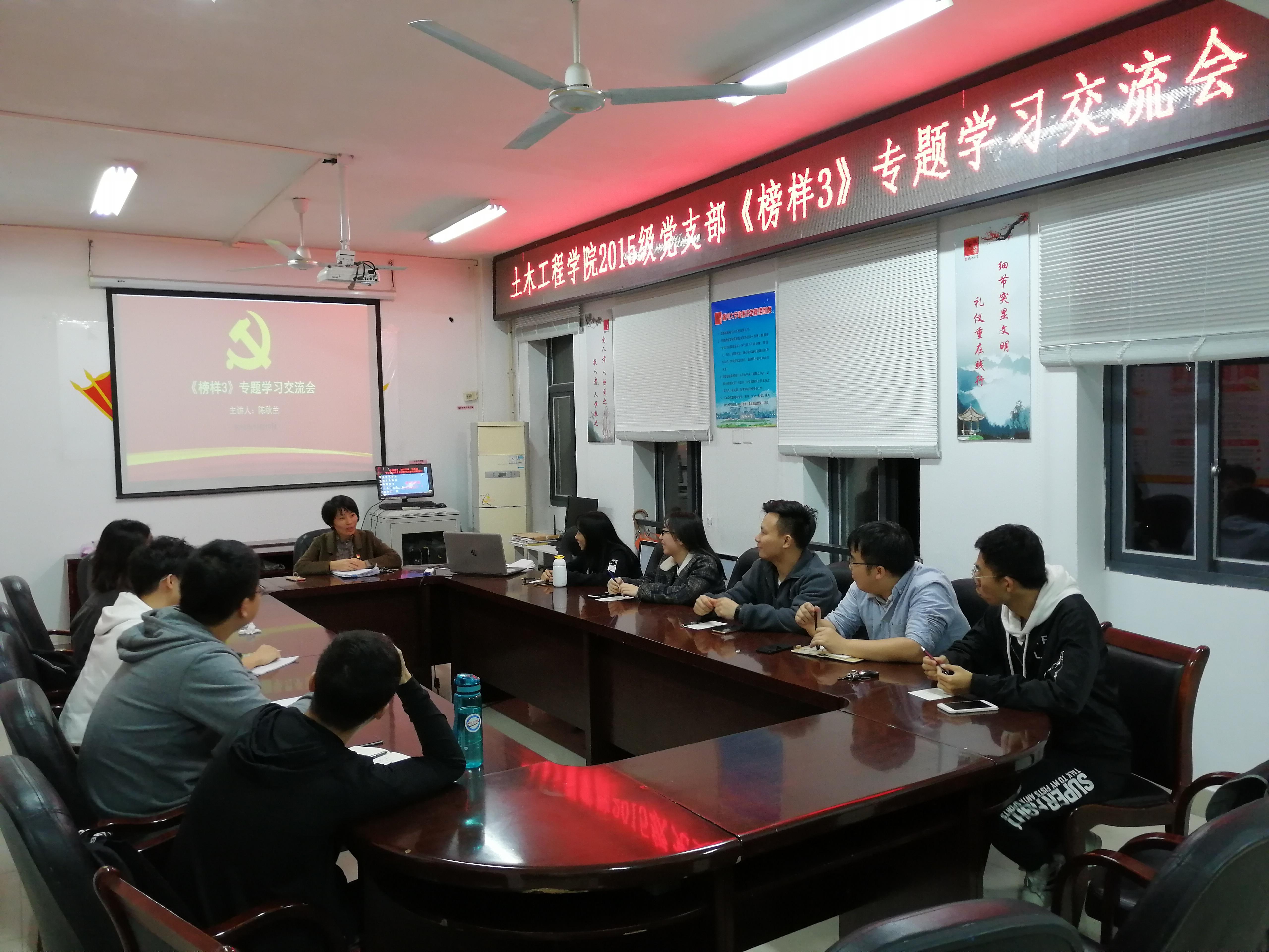 2015级党支部于第二会议室召开《榜样3》专题学习交流会。会议由2015级辅导员兼土木工程一班党支部书记陈秋兰老师主持召开。