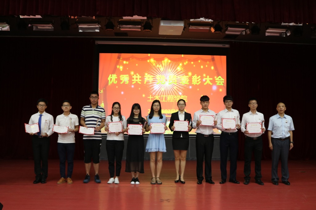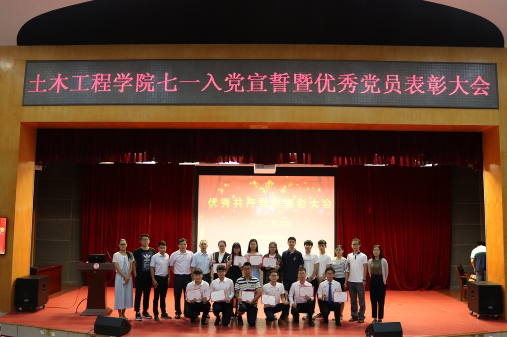 在奏唱国际歌之后,李坤皇老师上台领读宣誓誓词,全体新发展党员面对党旗庄严宣誓,全体老党员重温入党誓词,随后,余飞副书记宣读受本次大会表彰的10名优秀学生党员和12名优秀教工党员,并请优秀党员代表上台接受表彰。颁奖典礼后,优秀学生党员陈鸿毅代表所有获奖党员上台发言,他表示在建党节这一伟大的节日里光荣地站在党旗面前再次宣誓,既是一份荣誉,更是一份激励,在回顾自己一年中的表现后,提出希望,希望新入党党员不忘初心,扎扎实实学习,认认真真做事,勤勤恳恳服务,在平凡的岗位上追逐自己的梦想。之后,院党委副书记余飞代表学院党委发表重要讲话,向获奖党员表达了祝贺,希望全体党员和入党积极分子能够将优秀党员做为标杆,见贤思齐,时时刻刻规范好自己,加强党的道德修养,追求党的崇高理想,在回顾学院一年党建工作取得的成绩的同时,就思想、组织、作风和纪律四个方面向全体党员提出新的要求和期望。最后,所有获奖党员上台与领导老师合影留念,大会至此圆满落幕。