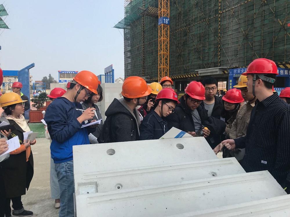 3月11日下午,同学们在颜学渊老师和杨丁颖老师的带领下抵达毕业实习活动第一站—福州中海地产观澜府项目。观澜府项目经理卢圣霖为同学们介绍了项目的简要概况,在他的细致讲解下,同学们对观澜府项目的前期策划、项目发展目标、项目开发、施工布置等一系列周期行为有了清晰的了解。接着卢经理对观澜府项目的重点难点痛点做了详细介绍。最后卢经理就同学们的疑惑一一解答。随后,项目负责人韩晶总带领同学们参观了施工工地,就铝模工艺和装配式工艺对同学们深入介绍。