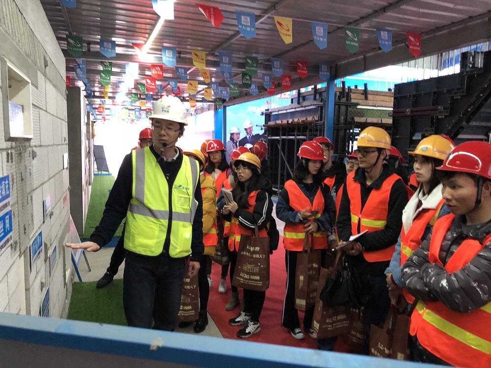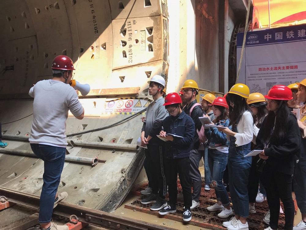 3月21日上午,同学们来到福州轨道交通五号线一期工程施工现场参观。福州地铁5号线起于闽侯,止于福州火车南站,线路全长38.8公里,设站27座,是福州主城区范围南台岛东西向轨道交通骨干线。五号线3标2公区由中国铁建十二局集团有限公司承建。项目人员带领我们熟悉了轨道交通施工现场的重难点施工,尤其就地下工程防水工艺和地下工程安全施工做了深入的介绍。之后项目人员带领同学们深入地下现场近距离观察隧道工程施工,同学们第一次近距离感受盾构机的工作现场,第一次深入地下17米近距离感受隧道工程施工工艺,大家显得异常兴奋,在现场提问环节同学们踊跃提出现场所看到的疑点难点,监理方、建设方以及施工方对同学们进行了耐心的解答与指导。