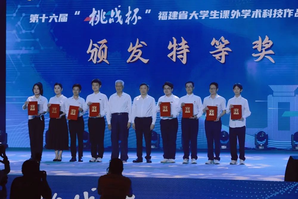 在大挑省赛的空白。颁奖现场,共青团福建省委书记李腾为项目创始人黄宇洲颁发获奖证书。