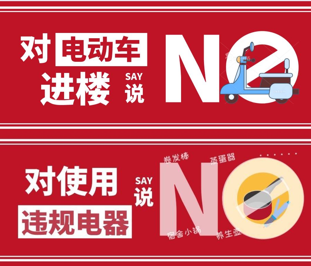 电动车进入楼道或者携带电动车电池进宿舍充电存在重大安全隐患,且容易引发爆炸事件,为了我们的生命财产安全,要坚决向电动车上楼、电动车电池进宿舍说NO!
