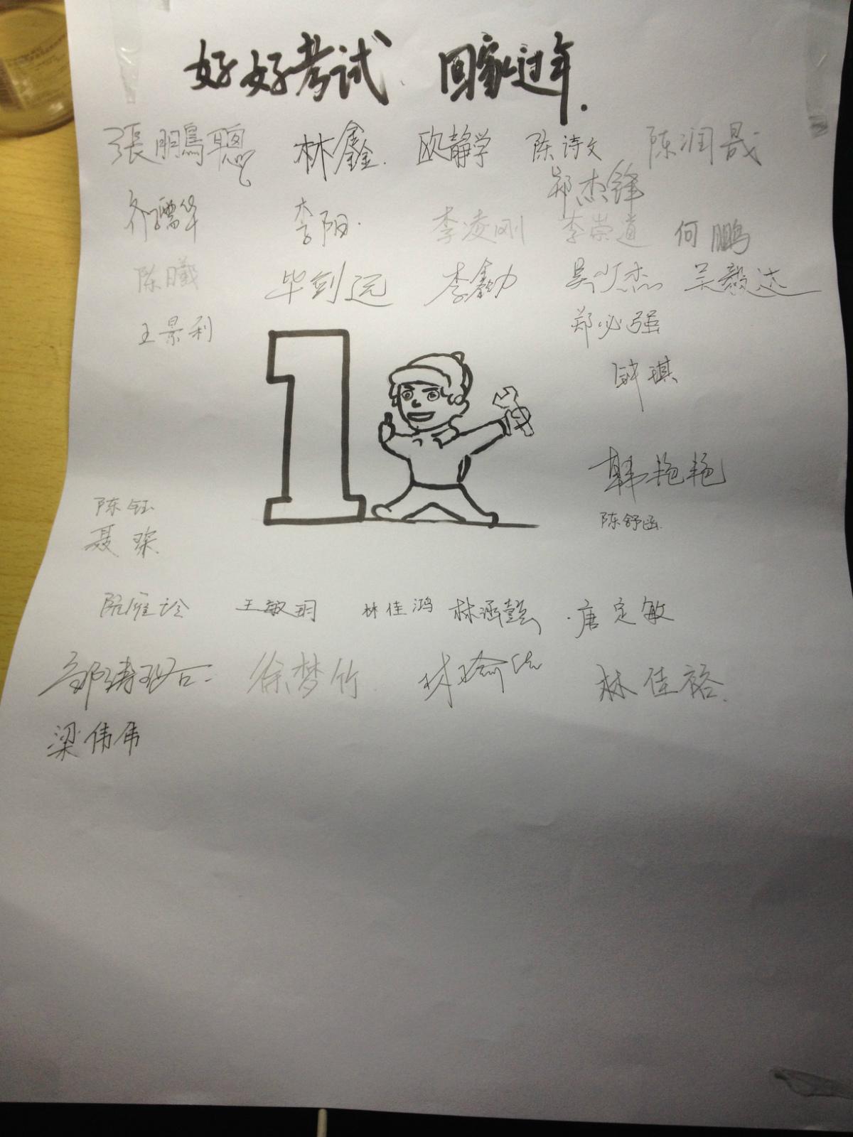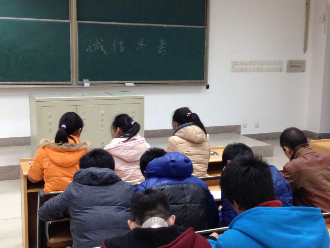 为响应1月7日段会上程导与齐导提出的有关诚信考试的号召,各班纷纷行动,举办了各色宣传诚信考试的活动。活动形式多样,如:主题班会,保证书,集体签名等。活动中,同学们都表现出高涨的士气,表示了诚信考试的决心。
