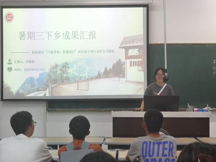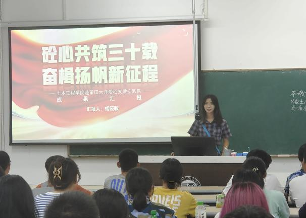 7支三下乡社会实践队代表,以ppt、视频等形式,从活动筹备、活动开展、调研成果、宣传报道等多方面进行了成果汇报,展示实践风采,畅谈实践感受。分享主题涵盖爱心支教、扬帆计划、乡村振兴、生态发展、专业探索等众多方面。多方面汇报,多主题分享,理论与实践的结合,让土木学子更加深刻认识到实践的意义。