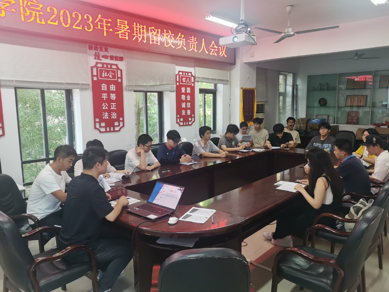 为顺利做好2023年暑假留校学生管理工作, 7月7日下午,院学工组组织召开2023年暑期留校学生负责人工作会议。全体专职辅导员和各年级暑期留校负责人参加了本次会议。