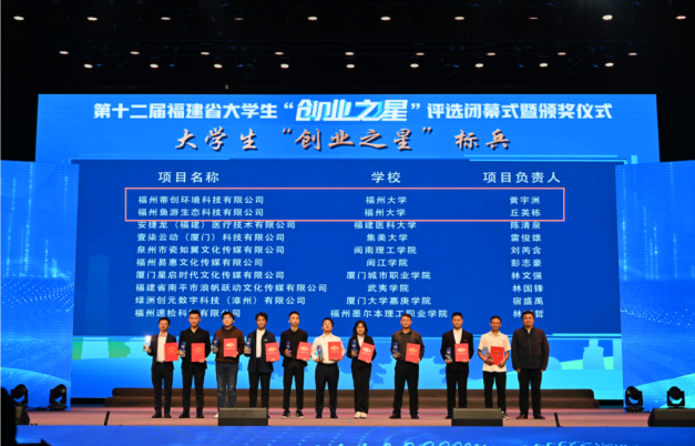 2023级博士研究生、福州蒂创环境科技有限公司创始人黄宇洲荣获2023年“创业之星”标兵称号,并作为创业项目代表接受福建农商银行授信1000万元。