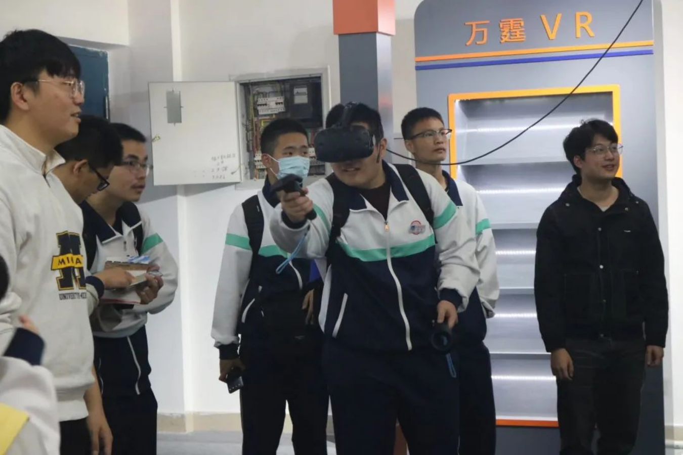 随后,智慧建造中心管理员陈铿老师带领同学们参观了智慧建造中心机房、CAVE沉浸式展厅以及万霆VR云体验中心,并在万霆VR中心展示了“钢筋拉伸”云模拟实验过程,让同学们体验了VR实体模拟操作。