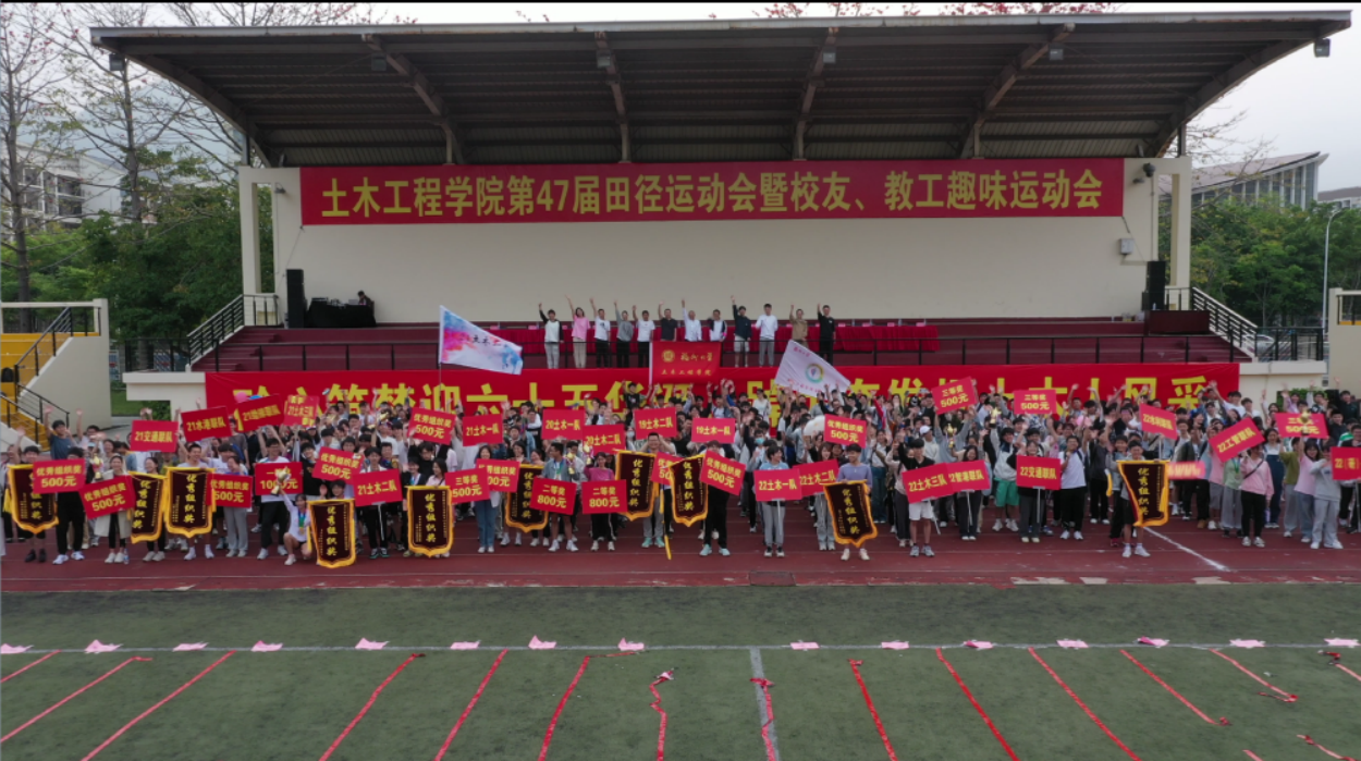 第47届田径运动会暨校友、教工趣味运动会在旗山校区一区田径场举行,校党委常委、林键副校长,校工会常务副主席、校友会会长程玉敏,土木学院党政领导班子成员以及省内各地土建校友会代表、校友企业代表出席开幕式。