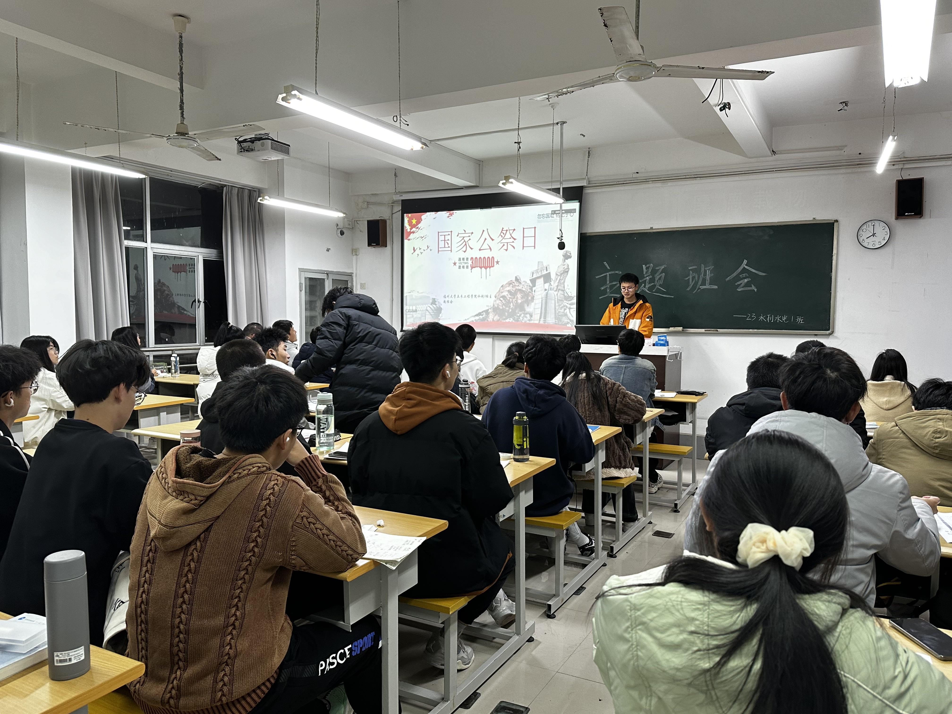 2023级本科生各班召开“铭记历史,砥砺前行”主题班会。主题班会上,以线上线下相结合的方式,通过观看纪录片、查阅相关历史资料等方式带领同学们重温历史、培养爱国主义情感,加强国家认同感和集体荣誉感,铭记:中国人民反对侵略战争、捍卫人类尊严、维护世界和平的坚定立场。会上,陶亮老师强调“一个共识就是牢记历史并不是要延续仇恨,而是要以史为鉴、面向未来”,倡导同学们坚定理想信念、凝聚奋进力量。