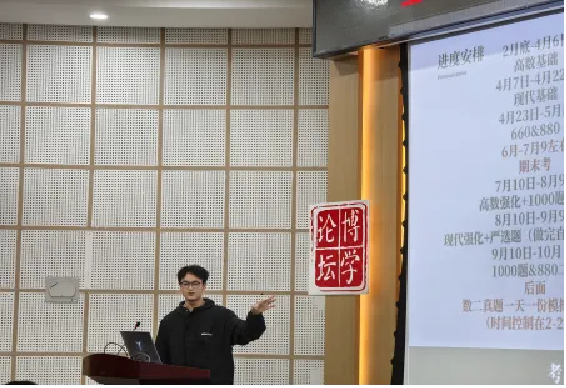 杨怀庆学长向大家分享了自己考研的经历与感受,并给大家提出了一些建议。首先,在院校选择上,他为大家讲解了如何寻找与自身实力相匹配的院校;其次是备考经验,对于数学,杨怀庆学长推荐《李林880》,对后期的数学成绩提升有很大的帮助;而对于英语和政治,杨怀庆学长则建议大家要以记忆和刷真题为主,找到自己的做题思路;最后,对于备考节奏,杨怀庆学长建议大家要根据自己的学习情况和特点,制定出符合自身需要的学习计划,注意劳逸结合,张弛有度。