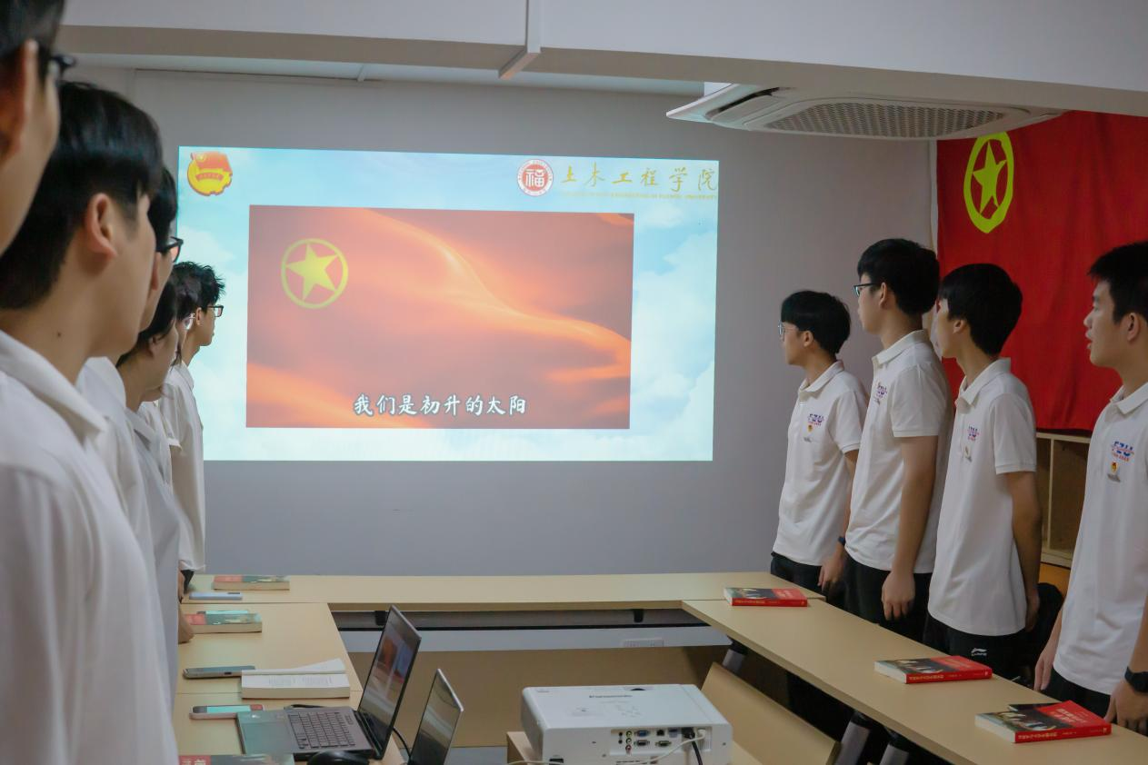 会议在激昂的中国共青团团歌《光荣啊,中国共青团》中拉开帷幕,全体团员在团支部书记的带领下,全体起立,面向团旗,合唱中国共青团团歌,歌声整齐而嘹亮,充满了激情和力量。