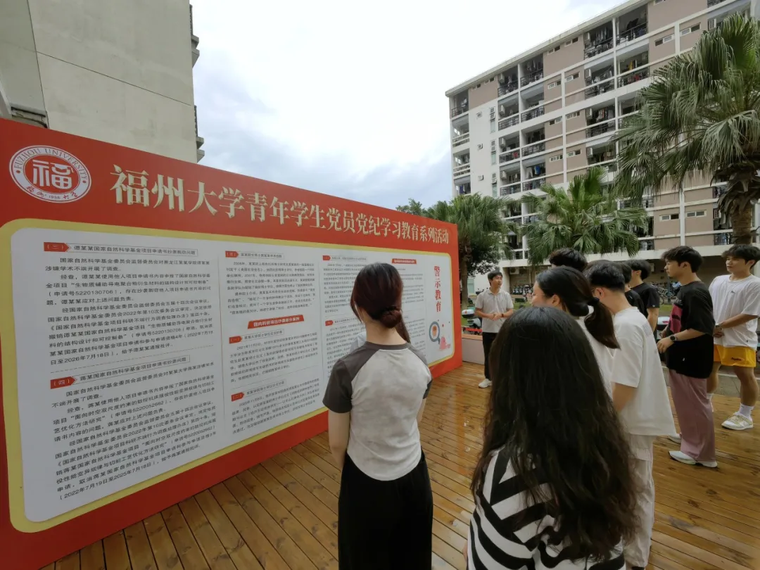 青年学生党员党纪学习教育系列活动警示教育展。楼宇党支部书记沈成平、童莹芳、刘荣锋和吴彦漫参加活动。