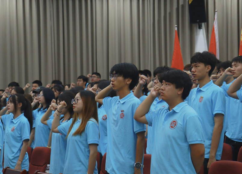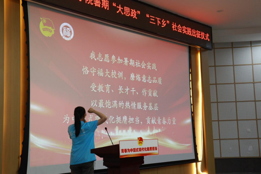 赴莆田大洋“三十一载支教路,公益桥梁筑学梦”红色支教实践队队长吴骥作为学生代表带领全体实践队队员在大会上庄严宣誓。