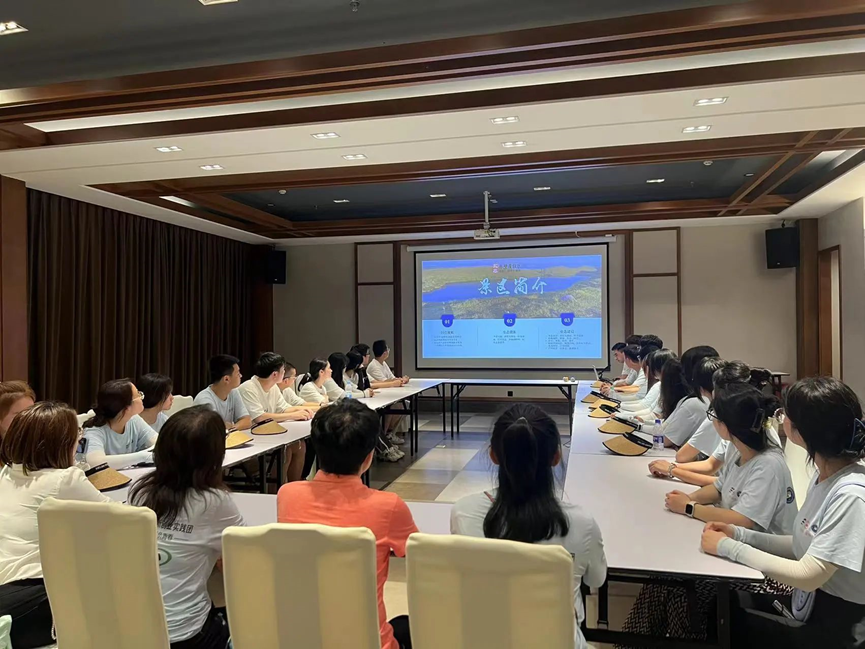 实践队员们乘坐游览车参观溪上船屋民宿,这是当地独有的船居文化,船艏三分之一“漂”于湖面之上,与周边的山水融为一体。随后,景区林主任深入介绍了赤壁生态景区的占地面积、地理位置、主要景点等内容,让实践队员们对景区的历史有了更深刻的了解。赤壁生态景区的落成,不仅彰显了生态环境与经济高质量发展的紧密结合,更是乡村振兴道路上的一大亮点和典范。