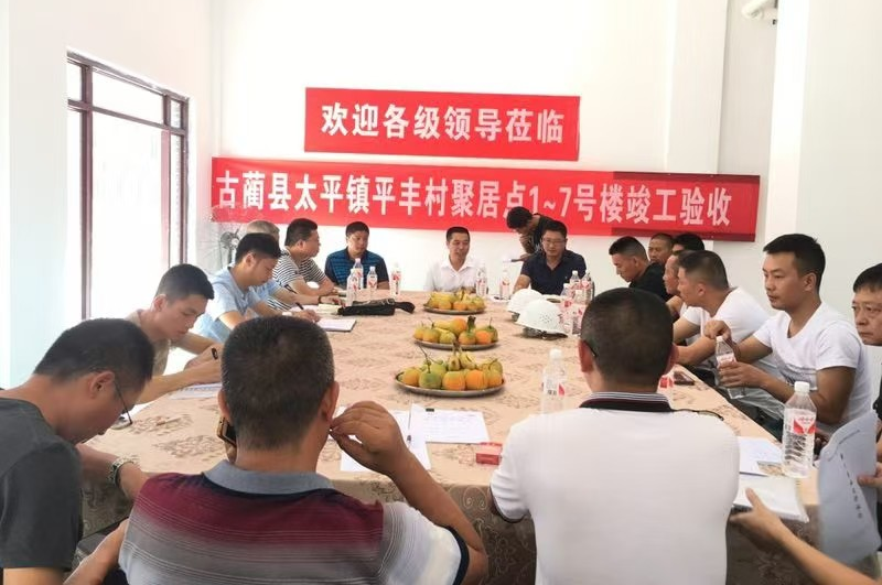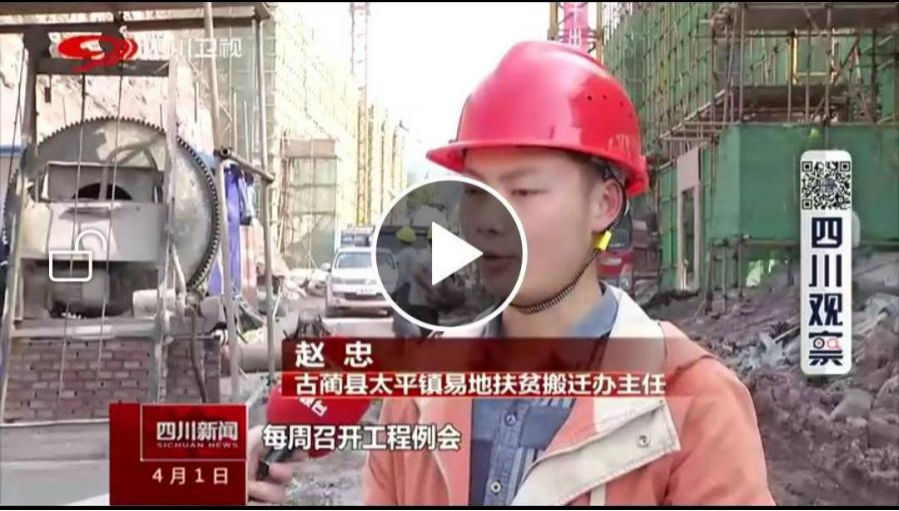 参加聚居点项目建设竣工验收(左中) 接受四川电视台采访