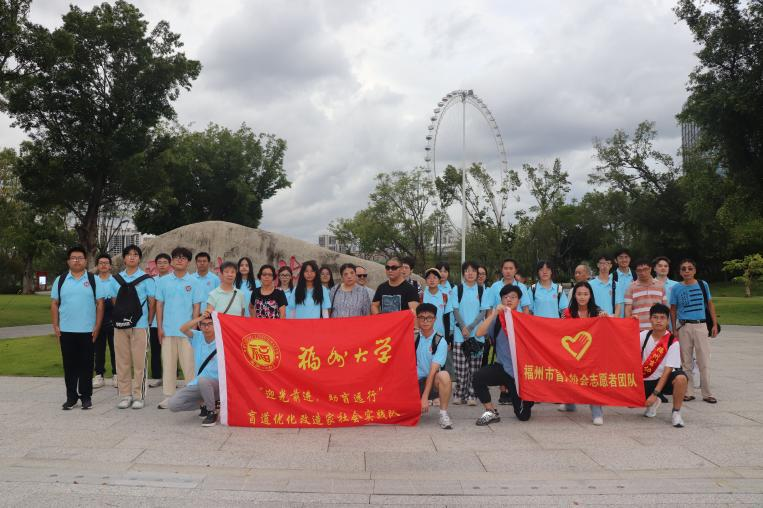 盲道优化改造家社会实践队在福州市气象台的通知下临时改变行程,并在与福州市盲人协会负责人协商后将实践活动最后一天的地点更改至福州市温泉公园,尽管天色看起来有些晦暗,但却丝毫无法影响实践队成员内心的热情。