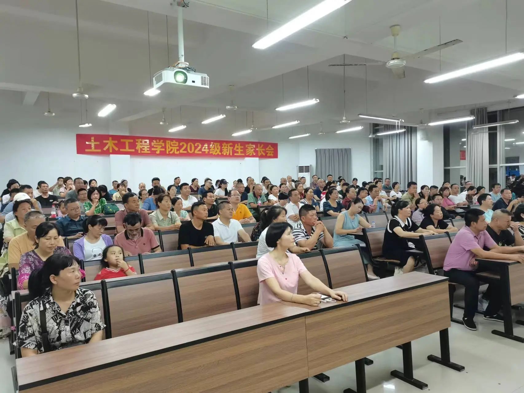 采用现场交流会与线上直播相结合的形式召开2024级本科新生家长交流会。新生辅导员徐剑、潘雨璐以及全体2024级本科生家长共同参加会议。