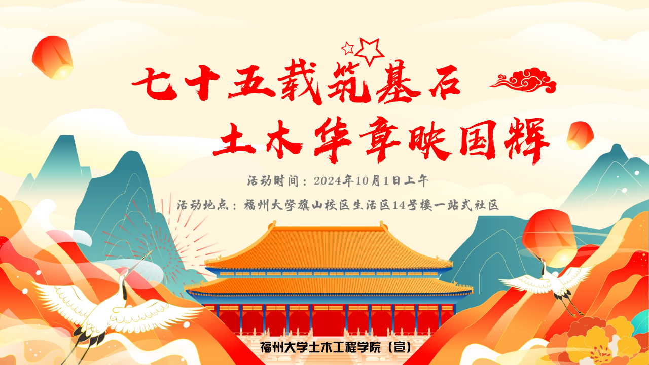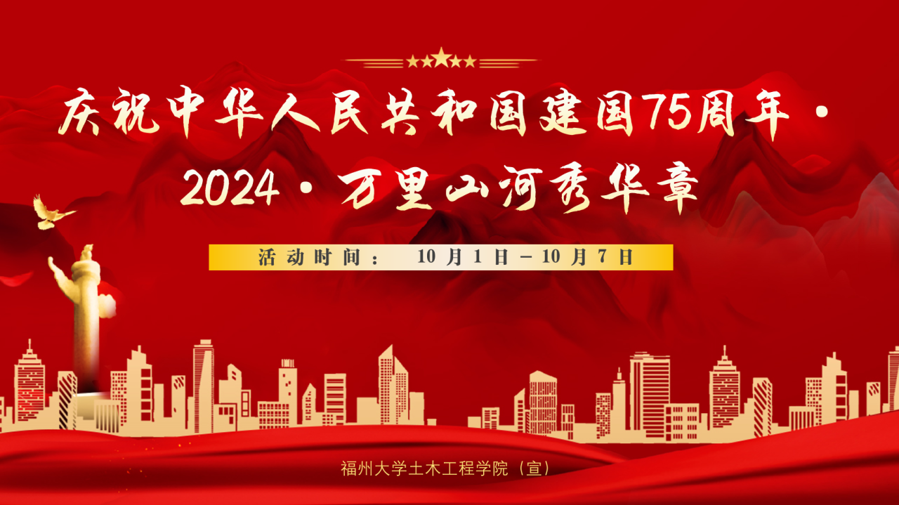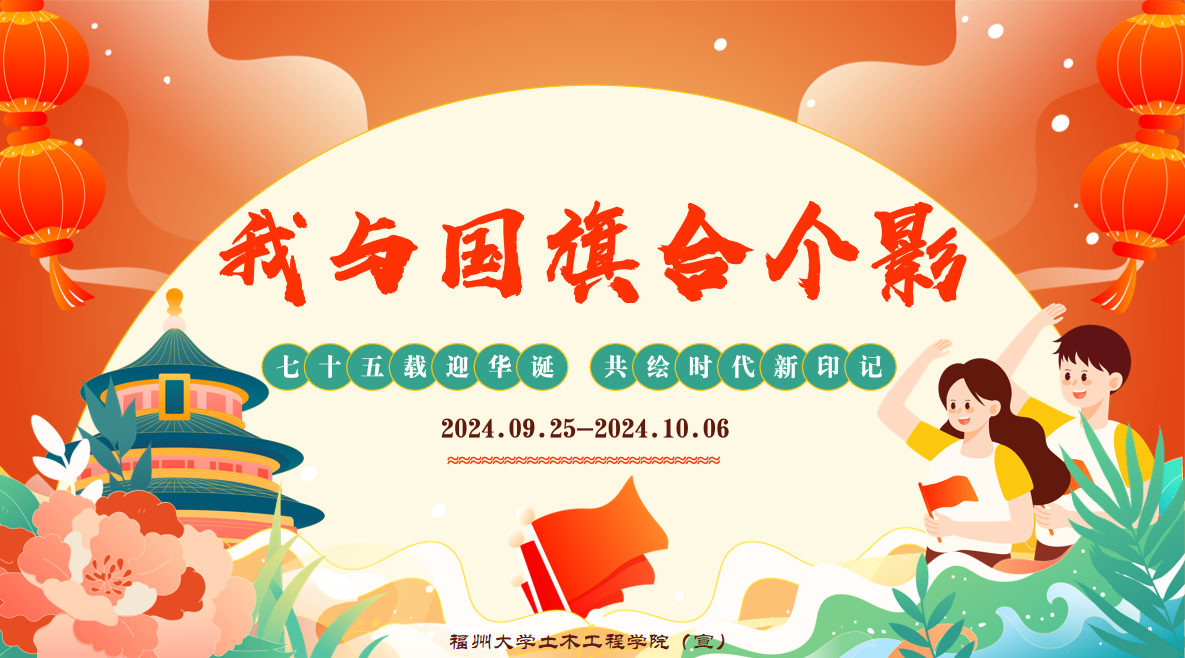 金秋时节,红旗飘扬,正值中华人民共和国成立 75 周年之际,愿伟大的祖国繁荣昌盛,万里山河常壮丽。本次“盛世同辉鉴华章,红韵满“福”迎国庆”活动希望通过丰富多彩的形式,弘扬爱国主义精神,激发同学们的民族自豪感。新时代的土木学子定将不负韶华,以青春之名,砼心协力,为祖国的建设添砖加瓦!